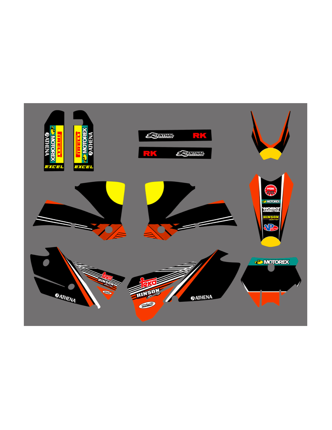 Les autocollants que nous produisons sont fabriqués à partir de matériaux crystal de première qualité qui s'adapteront facilement et parfaitement sur les plastiques de la moto du client. La résistance du matériau permet à notre graphisme de rester parfaitement collé même dans les conditions d'utilisation les plus difficiles de la moto. L'installation, grâce aux canaux d'évacuation d'air, vous permet d'installer les autocollants en douceur et sans bulles. Nous utilisons des machines de dernière génération pour l'impression, nous pouvons donc imprimer des couleurs vives et des nuances de haute qualité. Nous incluons une couche protectrice sur les autocollants, afin qu'ils soient toujours brillants au fil des ans et soient protégés contre l'eau et la saleté. Il est possible de personnaliser les autocollants selon vos préférences. Vous pouvez ajouter, supprimer ou modifier des sponsors techniciens, ajouter un numéro de course personnalisé ou votre propre nom. Vous pouvez indiquer toutes les modifications dans le champ «Personnalisation» sur le site Web lors de l'achat. Nous ne nous limitons pas seulement aux graphiques sur notre site Web, vous pouvez nous envoyer par e-mail ou WhatsApp une photo d'un design que nous n'avons pas, afin que nous puissions vous faire un devis et ensuite le faire. Par l'achat, vous acceptez les conditions de vente.