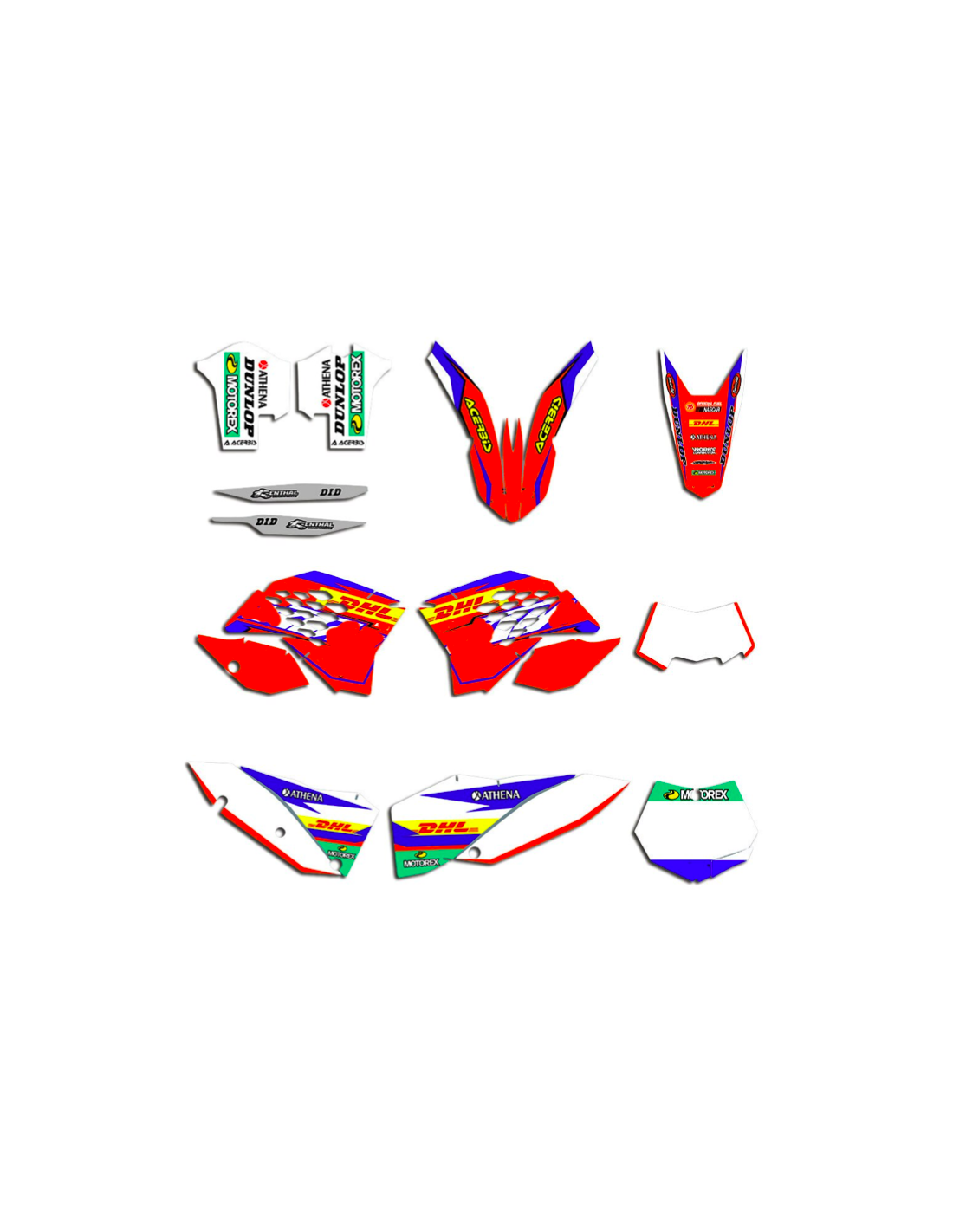 Les autocollants que nous produisons sont fabriqués à partir de matériaux crystal de première qualité qui s'adapteront facilement et parfaitement sur les plastiques de la moto du client. La résistance du matériau permet à notre graphisme de rester parfaitement collé même dans les conditions d'utilisation les plus difficiles de la moto. L'installation, grâce aux canaux d'évacuation d'air, vous permet d'installer les autocollants en douceur et sans bulles. Nous utilisons des machines de dernière génération pour l'impression, nous pouvons donc imprimer des couleurs vives et des nuances de haute qualité. Nous incluons une couche protectrice sur les autocollants, afin qu'ils soient toujours brillants au fil des ans et soient protégés contre l'eau et la saleté. Il est possible de personnaliser les autocollants selon vos préférences. Vous pouvez ajouter, supprimer ou modifier des sponsors techniciens, ajouter un numéro de course personnalisé ou votre propre nom. Vous pouvez indiquer toutes les modifications dans le champ «Personnalisation» sur le site Web lors de l'achat. Nous ne nous limitons pas seulement aux graphiques sur notre site Web, vous pouvez nous envoyer par e-mail ou WhatsApp une photo d'un design que nous n'avons pas, afin que nous puissions vous faire un devis et ensuite le faire. Par l'achat, vous acceptez les conditions de vente.
