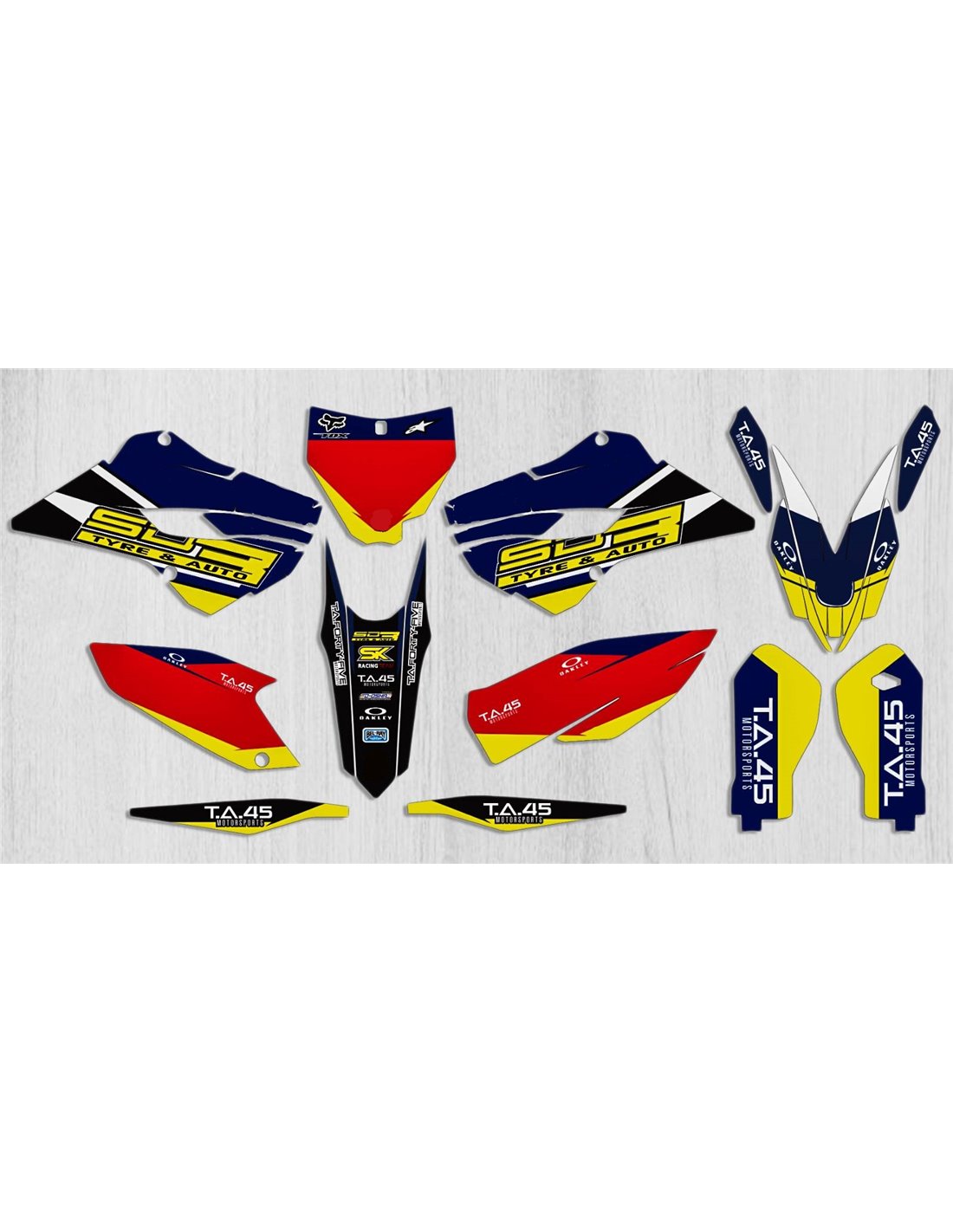 Les autocollants que nous produisons sont fabriqués à partir de matériaux crystal de première qualité qui s'adapteront facilement et parfaitement sur les plastiques de la moto du client. La résistance du matériau permet à notre graphisme de rester parfaitement collé même dans les conditions d'utilisation les plus difficiles de la moto. L'installation, grâce aux canaux d'évacuation d'air, vous permet d'installer les autocollants en douceur et sans bulles. Nous utilisons des machines de dernière génération pour l'impression, nous pouvons donc imprimer des couleurs vives et des nuances de haute qualité. Nous incluons une couche protectrice sur les autocollants, afin qu'ils soient toujours brillants au fil des ans et soient protégés contre l'eau et la saleté. Il est possible de personnaliser les autocollants selon vos préférences. Vous pouvez ajouter, supprimer ou modifier des sponsors techniciens, ajouter un numéro de course personnalisé ou votre propre nom. Vous pouvez indiquer toutes les modifications dans le champ «Personnalisation» sur le site Web lors de l'achat. Nous ne nous limitons pas seulement aux graphiques sur notre site Web, vous pouvez nous envoyer par e-mail ou WhatsApp une photo d'un design que nous n'avons pas, afin que nous puissions vous faire un devis et ensuite le faire. Par l'achat, vous acceptez les conditions de vente.