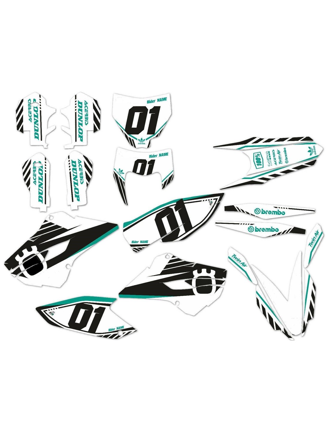 Les autocollants que nous produisons sont fabriqués à partir de matériaux crystal de première qualité qui s'adapteront facilement et parfaitement sur les plastiques de la moto du client. La résistance du matériau permet à notre graphisme de rester parfaitement collé même dans les conditions d'utilisation les plus difficiles de la moto. L'installation, grâce aux canaux d'évacuation d'air, vous permet d'installer les autocollants en douceur et sans bulles. Nous utilisons des machines de dernière génération pour l'impression, nous pouvons donc imprimer des couleurs vives et des nuances de haute qualité. Nous incluons une couche protectrice sur les autocollants, afin qu'ils soient toujours brillants au fil des ans et soient protégés contre l'eau et la saleté. Il est possible de personnaliser les autocollants selon vos préférences. Vous pouvez ajouter, supprimer ou modifier des sponsors techniciens, ajouter un numéro de course personnalisé ou votre propre nom. Vous pouvez indiquer toutes les modifications dans le champ «Personnalisation» sur le site Web lors de l'achat. Nous ne nous limitons pas seulement aux graphiques sur notre site Web, vous pouvez nous envoyer par e-mail ou WhatsApp une photo d'un design que nous n'avons pas, afin que nous puissions vous faire un devis et ensuite le faire. Par l'achat, vous acceptez les conditions de vente.