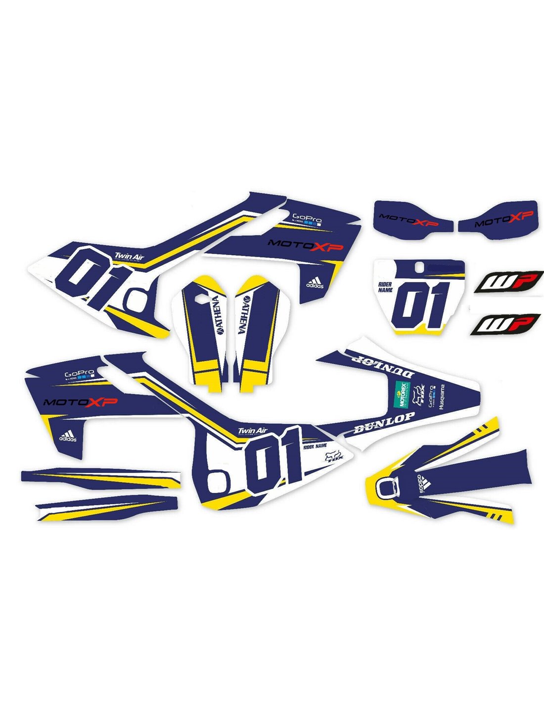 Les autocollants que nous produisons sont fabriqués à partir de matériaux crystal de première qualité qui s'adapteront facilement et parfaitement sur les plastiques de la moto du client. La résistance du matériau permet à notre graphisme de rester parfaitement collé même dans les conditions d'utilisation les plus difficiles de la moto. L'installation, grâce aux canaux d'évacuation d'air, vous permet d'installer les autocollants en douceur et sans bulles. Nous utilisons des machines de dernière génération pour l'impression, nous pouvons donc imprimer des couleurs vives et des nuances de haute qualité. Nous incluons une couche protectrice sur les autocollants, afin qu'ils soient toujours brillants au fil des ans et soient protégés contre l'eau et la saleté. Il est possible de personnaliser les autocollants selon vos préférences. Vous pouvez ajouter, supprimer ou modifier des sponsors techniciens, ajouter un numéro de course personnalisé ou votre propre nom. Vous pouvez indiquer toutes les modifications dans le champ «Personnalisation» sur le site Web lors de l'achat. Nous ne nous limitons pas seulement aux graphiques sur notre site Web, vous pouvez nous envoyer par e-mail ou WhatsApp une photo d'un design que nous n'avons pas, afin que nous puissions vous faire un devis et ensuite le faire. Par l'achat, vous acceptez les conditions de vente.