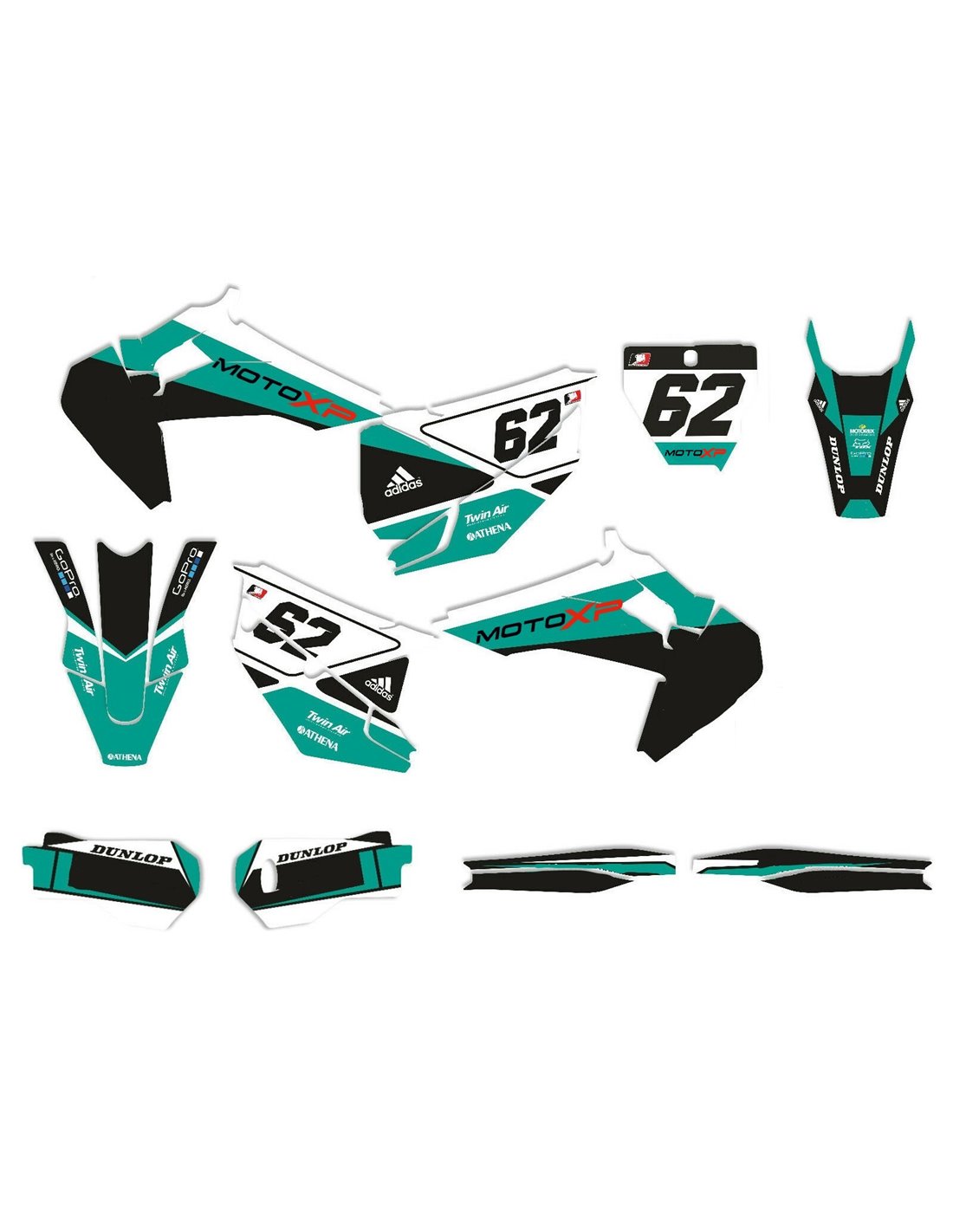 Les autocollants que nous produisons sont fabriqués à partir de matériaux crystal de première qualité qui s'adapteront facilement et parfaitement sur les plastiques de la moto du client. La résistance du matériau permet à notre graphisme de rester parfaitement collé même dans les conditions d'utilisation les plus difficiles de la moto. L'installation, grâce aux canaux d'évacuation d'air, vous permet d'installer les autocollants en douceur et sans bulles. Nous utilisons des machines de dernière génération pour l'impression, nous pouvons donc imprimer des couleurs vives et des nuances de haute qualité. Nous incluons une couche protectrice sur les autocollants, afin qu'ils soient toujours brillants au fil des ans et soient protégés contre l'eau et la saleté. Il est possible de personnaliser les autocollants selon vos préférences. Vous pouvez ajouter, supprimer ou modifier des sponsors techniciens, ajouter un numéro de course personnalisé ou votre propre nom. Vous pouvez indiquer toutes les modifications dans le champ «Personnalisation» sur le site Web lors de l'achat. Nous ne nous limitons pas seulement aux graphiques sur notre site Web, vous pouvez nous envoyer par e-mail ou WhatsApp une photo d'un design que nous n'avons pas, afin que nous puissions vous faire un devis et ensuite le faire. Par l'achat, vous acceptez les conditions de vente.