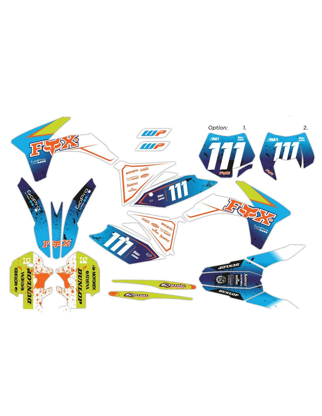 Les autocollants que nous produisons sont fabriqués à partir de matériaux crystal de première qualité qui s'adapteront facilement et parfaitement sur les plastiques de la moto du client. La résistance du matériau permet à notre graphisme de rester parfaitement collé même dans les conditions d'utilisation les plus difficiles de la moto. L'installation, grâce aux canaux d'évacuation d'air, vous permet d'installer les autocollants en douceur et sans bulles. Nous utilisons des machines de dernière génération pour l'impression, nous pouvons donc imprimer des couleurs vives et des nuances de haute qualité. Nous incluons une couche protectrice sur les autocollants, afin qu'ils soient toujours brillants au fil des ans et soient protégés contre l'eau et la saleté. Il est possible de personnaliser les autocollants selon vos préférences. Vous pouvez ajouter, supprimer ou modifier des sponsors techniciens, ajouter un numéro de course personnalisé ou votre propre nom. Vous pouvez indiquer toutes les modifications dans le champ «Personnalisation» sur le site Web lors de l'achat. Nous ne nous limitons pas seulement aux graphiques sur notre site Web, vous pouvez nous envoyer par e-mail ou WhatsApp une photo d'un design que nous n'avons pas, afin que nous puissions vous faire un devis et ensuite le faire. Par l'achat, vous acceptez les conditions de vente.