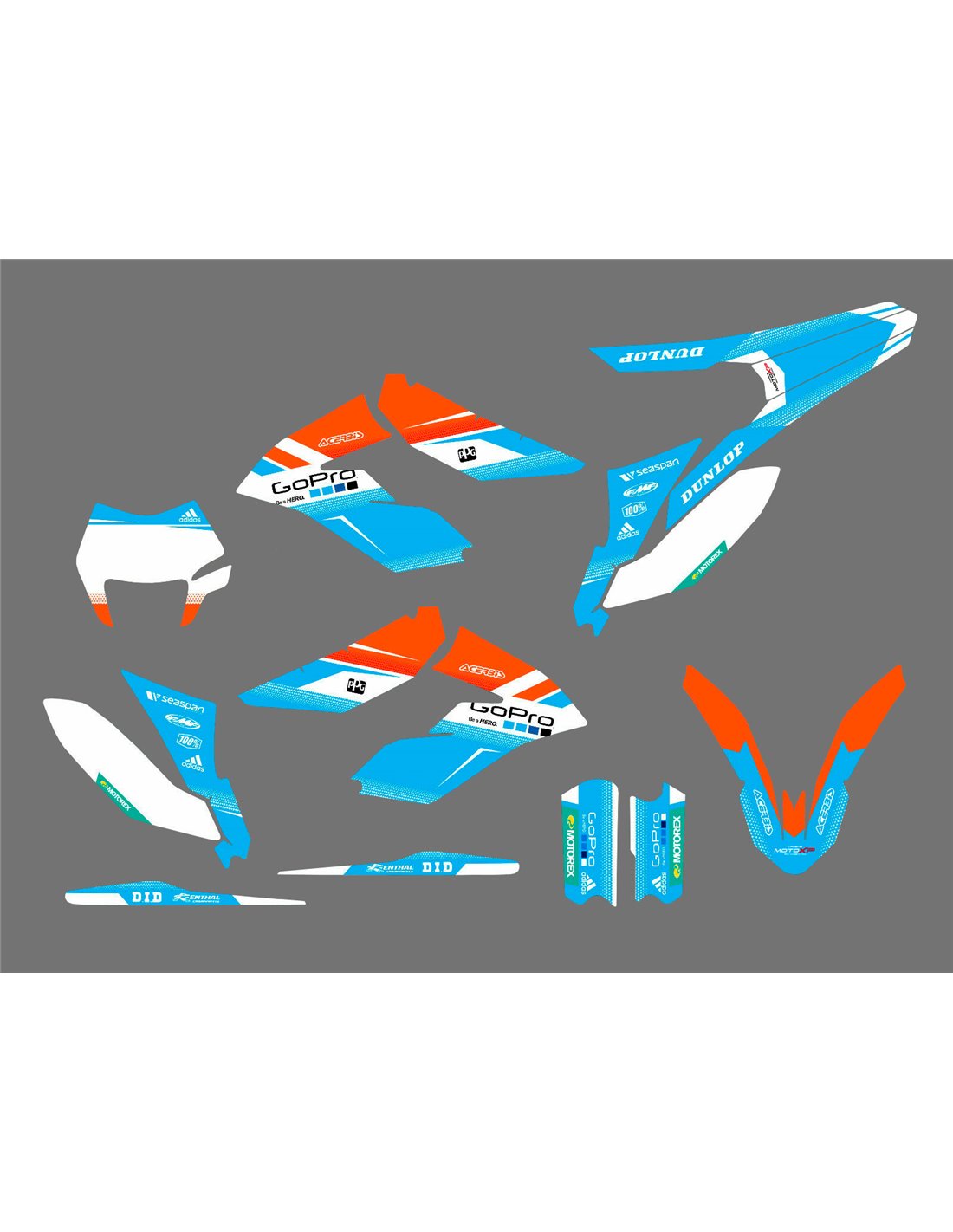 Les autocollants que nous produisons sont fabriqués à partir de matériaux crystal de première qualité qui s'adapteront facilement et parfaitement sur les plastiques de la moto du client. La résistance du matériau permet à notre graphisme de rester parfaitement collé même dans les conditions d'utilisation les plus difficiles de la moto. L'installation, grâce aux canaux d'évacuation d'air, vous permet d'installer les autocollants en douceur et sans bulles. Nous utilisons des machines de dernière génération pour l'impression, nous pouvons donc imprimer des couleurs vives et des nuances de haute qualité. Nous incluons une couche protectrice sur les autocollants, afin qu'ils soient toujours brillants au fil des ans et soient protégés contre l'eau et la saleté. Il est possible de personnaliser les autocollants selon vos préférences. Vous pouvez ajouter, supprimer ou modifier des sponsors techniciens, ajouter un numéro de course personnalisé ou votre propre nom. Vous pouvez indiquer toutes les modifications dans le champ «Personnalisation» sur le site Web lors de l'achat. Nous ne nous limitons pas seulement aux graphiques sur notre site Web, vous pouvez nous envoyer par e-mail ou WhatsApp une photo d'un design que nous n'avons pas, afin que nous puissions vous faire un devis et ensuite le faire. Par l'achat, vous acceptez les conditions de vente.