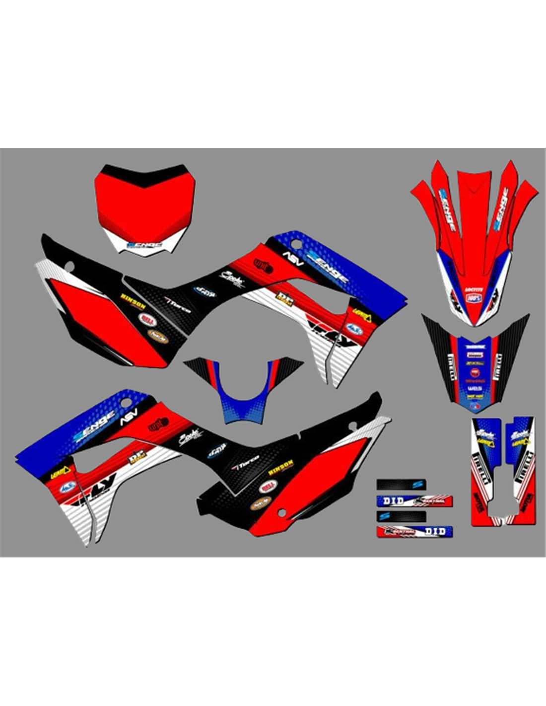 Les autocollants que nous produisons sont fabriqués à partir de matériaux crystal de première qualité qui s'adapteront facilement et parfaitement sur les plastiques de la moto du client. La résistance du matériau permet à notre graphisme de rester parfaitement collé même dans les conditions d'utilisation les plus difficiles de la moto. L'installation, grâce aux canaux d'évacuation d'air, vous permet d'installer les autocollants en douceur et sans bulles. Nous utilisons des machines de dernière génération pour l'impression, nous pouvons donc imprimer des couleurs vives et des nuances de haute qualité. Nous incluons une couche protectrice sur les autocollants, afin qu'ils soient toujours brillants au fil des ans et soient protégés contre l'eau et la saleté. Il est possible de personnaliser les autocollants selon vos préférences. Vous pouvez ajouter, supprimer ou modifier des sponsors techniciens, ajouter un numéro de course personnalisé ou votre propre nom. Vous pouvez indiquer toutes les modifications dans le champ «Personnalisation» sur le site Web lors de l'achat. Nous ne nous limitons pas seulement aux graphiques sur notre site Web, vous pouvez nous envoyer par e-mail ou WhatsApp une photo d'un design que nous n'avons pas, afin que nous puissions vous faire un devis et ensuite le faire. Par l'achat, vous acceptez les conditions de vente.