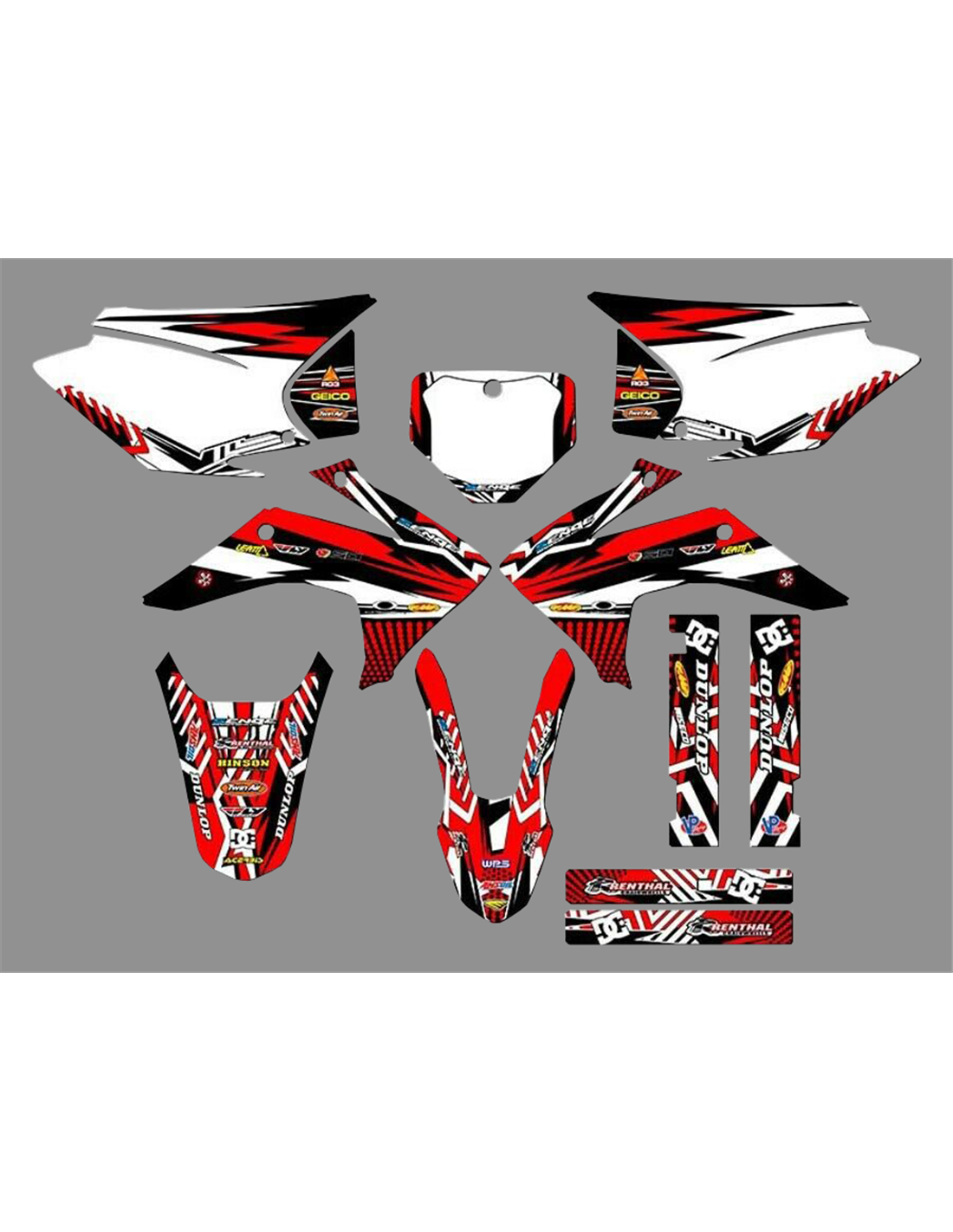 Les autocollants que nous produisons sont fabriqués à partir de matériaux crystal de première qualité qui s'adapteront facilement et parfaitement sur les plastiques de la moto du client. La résistance du matériau permet à notre graphisme de rester parfaitement collé même dans les conditions d'utilisation les plus difficiles de la moto. L'installation, grâce aux canaux d'évacuation d'air, vous permet d'installer les autocollants en douceur et sans bulles. Nous utilisons des machines de dernière génération pour l'impression, nous pouvons donc imprimer des couleurs vives et des nuances de haute qualité. Nous incluons une couche protectrice sur les autocollants, afin qu'ils soient toujours brillants au fil des ans et soient protégés contre l'eau et la saleté. Il est possible de personnaliser les autocollants selon vos préférences. Vous pouvez ajouter, supprimer ou modifier des sponsors techniciens, ajouter un numéro de course personnalisé ou votre propre nom. Vous pouvez indiquer toutes les modifications dans le champ «Personnalisation» sur le site Web lors de l'achat. Nous ne nous limitons pas seulement aux graphiques sur notre site Web, vous pouvez nous envoyer par e-mail ou WhatsApp une photo d'un design que nous n'avons pas, afin que nous puissions vous faire un devis et ensuite le faire. Par l'achat, vous acceptez les conditions de vente.