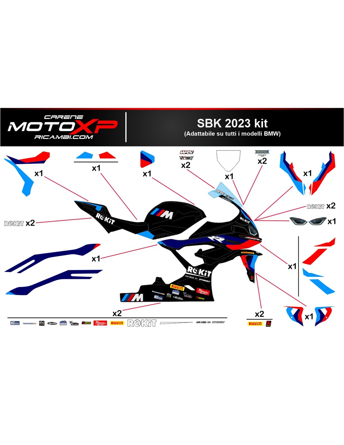 Kit Autocollants compatible avec Bmw S 1000RR 2023 - 2024 - MXPKAD17022