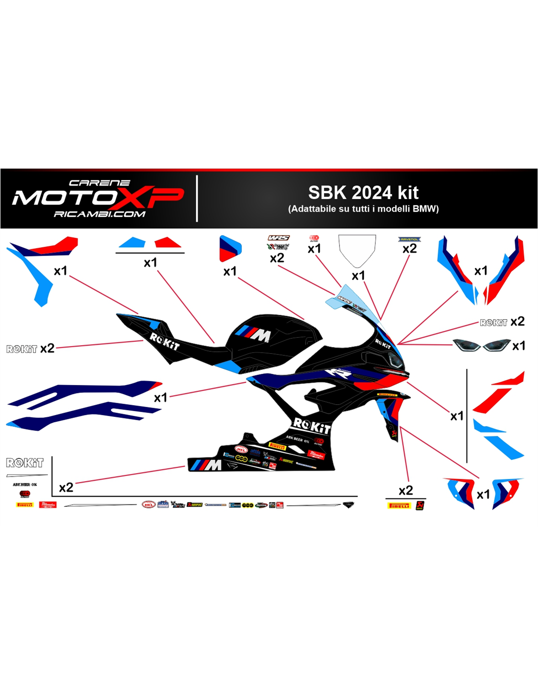 Kit Autocollants compatible avec Bmw S 1000RR 2023 - 2024 - MXPKAD17314