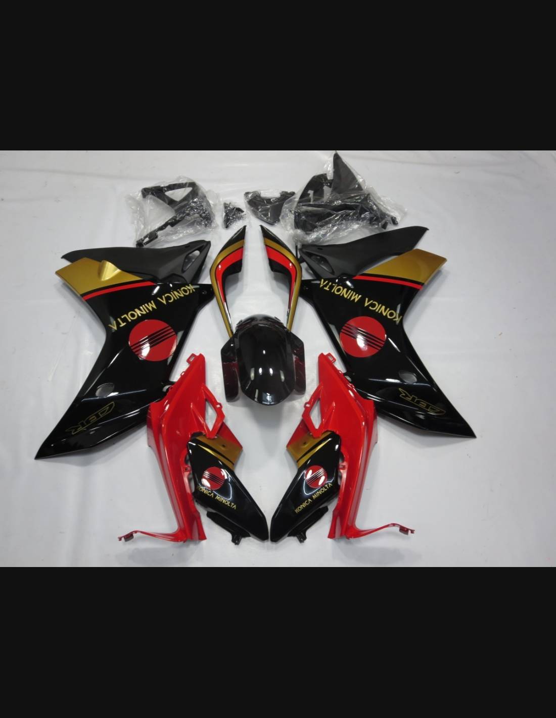Les carénages sont fait en ABS (plastique) et sont compatible avec les carénages d’origine de la moto. Sont fournis déjà avec tous les trous et les supports internement, pour garantir un montage facile et sans modification, sur la moto de client. Aussi les carénages sont compatible avec les vis et tous les autre accessoires d’origine de la moto. Dans le prix est inclus aussi la protection chaleur pour le bas de carénage.