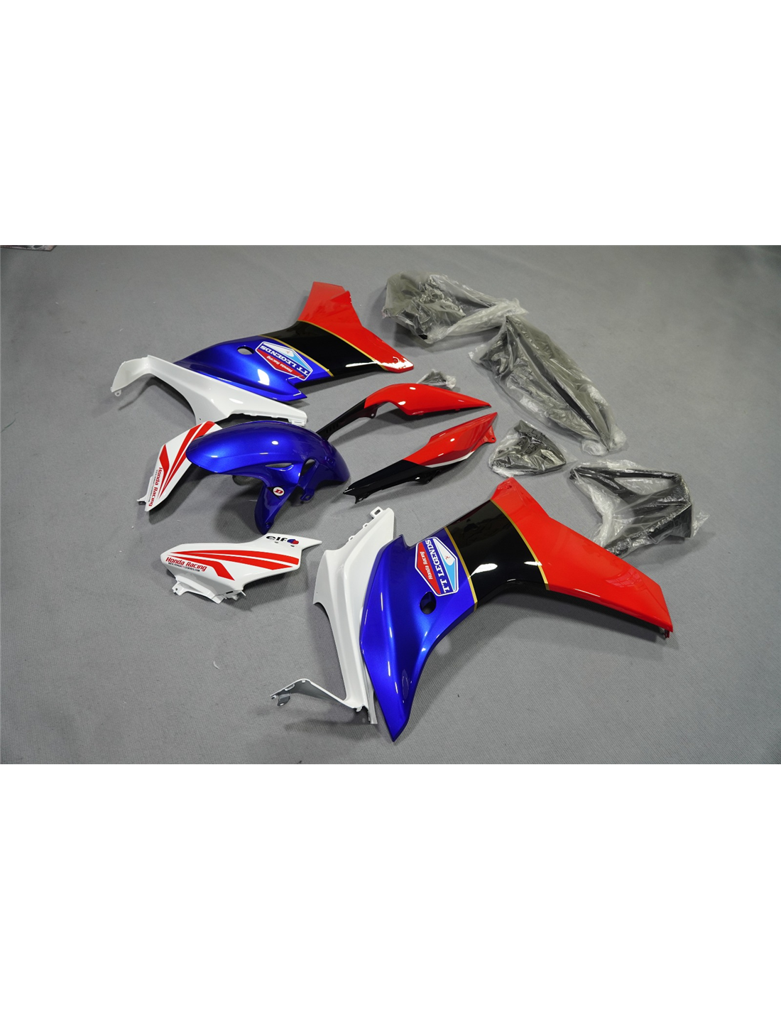 Les carénages sont fait en ABS (plastique) et sont compatible avec les carénages d’origine de la moto. Sont fournis déjà avec tous les trous et les supports internement, pour garantir un montage facile et sans modification, sur la moto de client. Aussi les carénages sont compatible avec les vis et tous les autre accessoires d’origine de la moto. Dans le prix est inclus aussi la protection chaleur pour le bas de carénage.