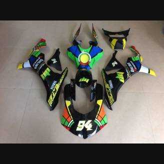 Le kit carénage comprend: tête de fourche, flanc gauche et droit, bas de carénage gauche et droit, coque arrière, garde boue avant et tous les parties noir pour compléter les carénages.