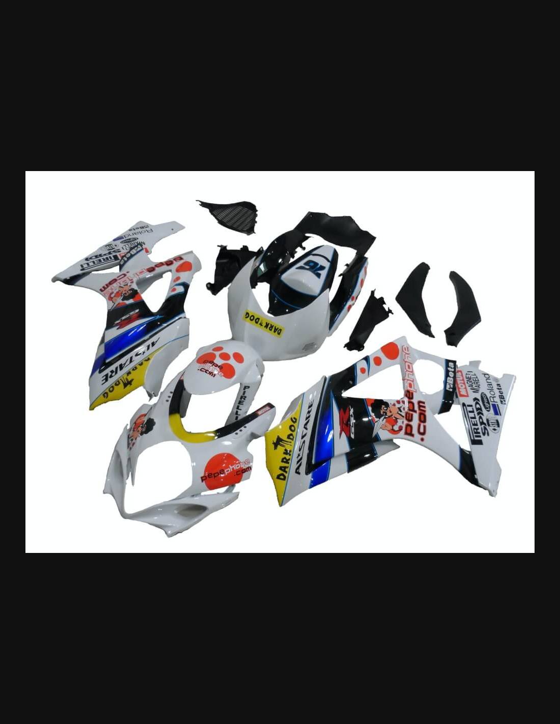 Les carénages sont fournis déjà peint et nous pouvons les personnalisée, vous doit seulement indiquer ça au moment de la commande. Par l'achat, vous acceptez les conditions de vente.