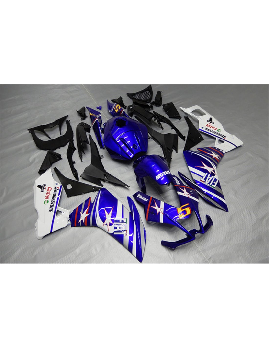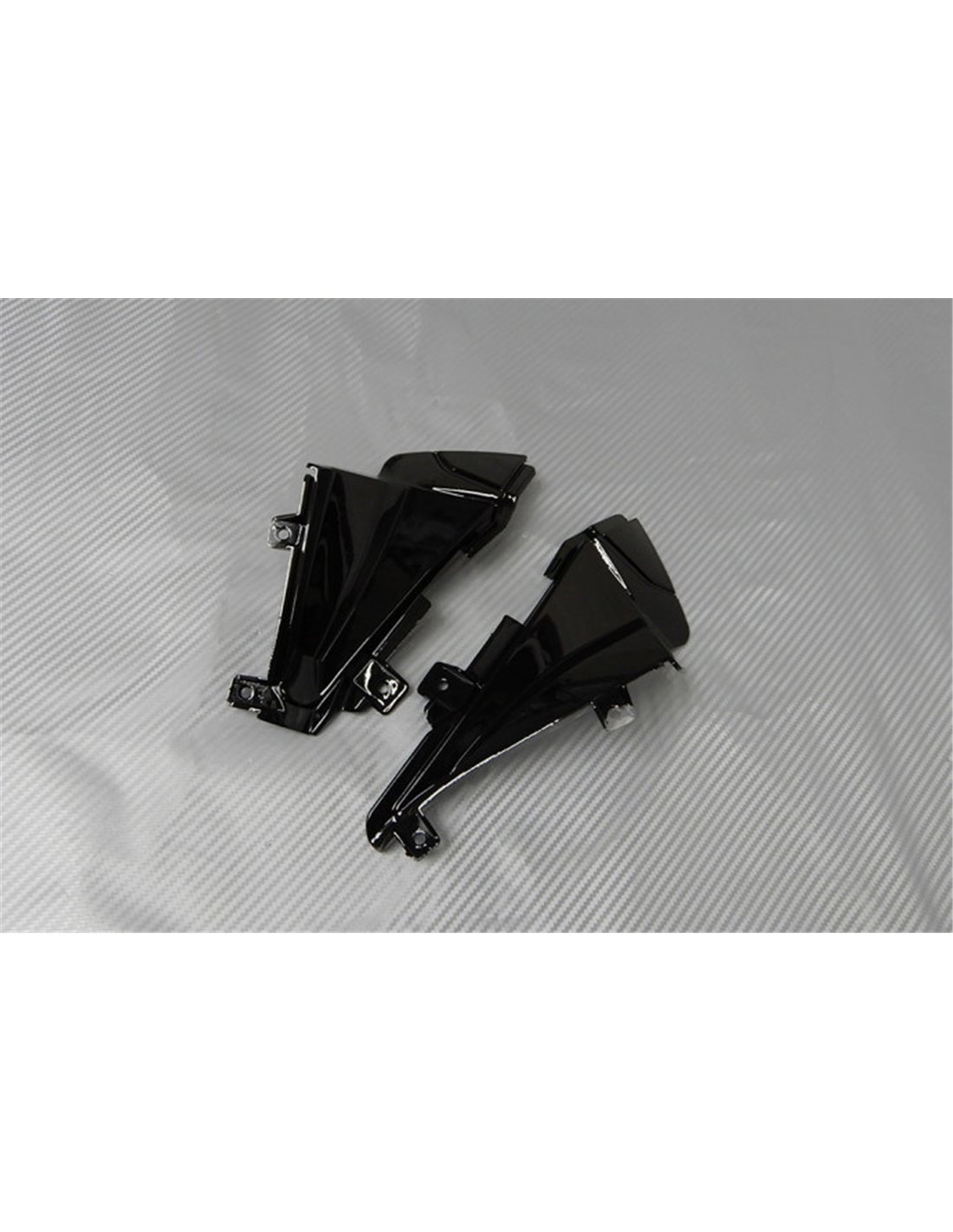 Les carénages sont fait en ABS (plastique) et sont compatible avec les carénages d’origine de la moto. Sont fournis déjà avec tous les trous et les supports internement, pour garantir un montage facile et sans modification, sur la moto de client. Aussi les carénages sont compatible avec les vis et tous les autre accessoires d’origine de la moto. Dans le prix est inclus aussi la protection chaleur pour le bas de carénage.