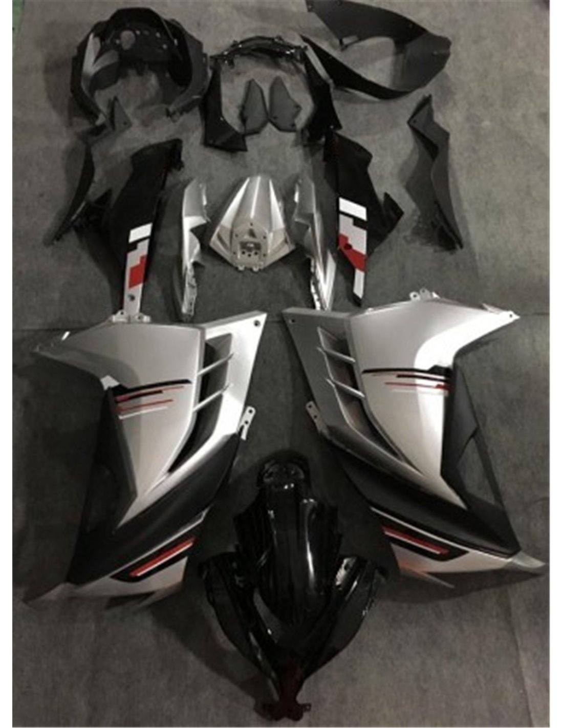 Les carénages sont fait en ABS (plastique) et sont compatible avec les carénages d’origine de la moto. Sont fournis déjà avec tous les trous et les supports internement, pour garantir un montage facile et sans modification, sur la moto de client. Aussi les carénages sont compatible avec les vis et tous les autre accessoires d’origine de la moto. Dans le prix est inclus aussi la protection chaleur pour le bas de carénage.
