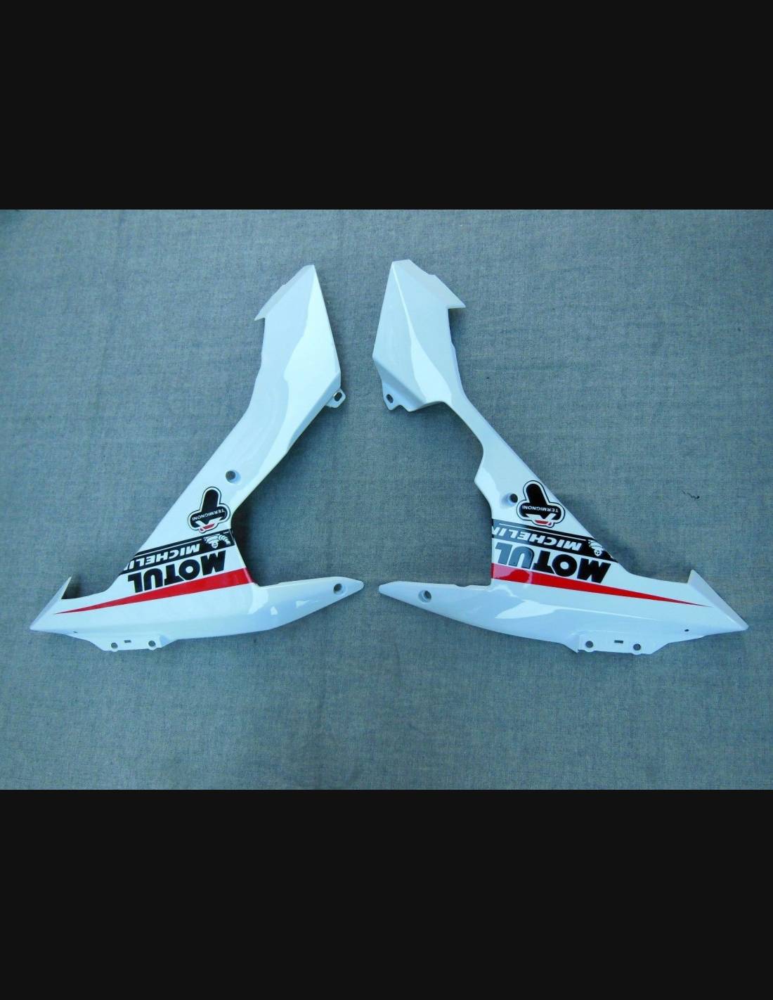 Les carénages sont fait en ABS (plastique) et sont compatible avec les carénages d’origine de la moto. Sont fournis déjà avec tous les trous et les supports internement, pour garantir un montage facile et sans modification, sur la moto de client. Aussi les carénages sont compatible avec les vis et tous les autre accessoires d’origine de la moto. Dans le prix est inclus aussi la protection chaleur pour le bas de carénage.