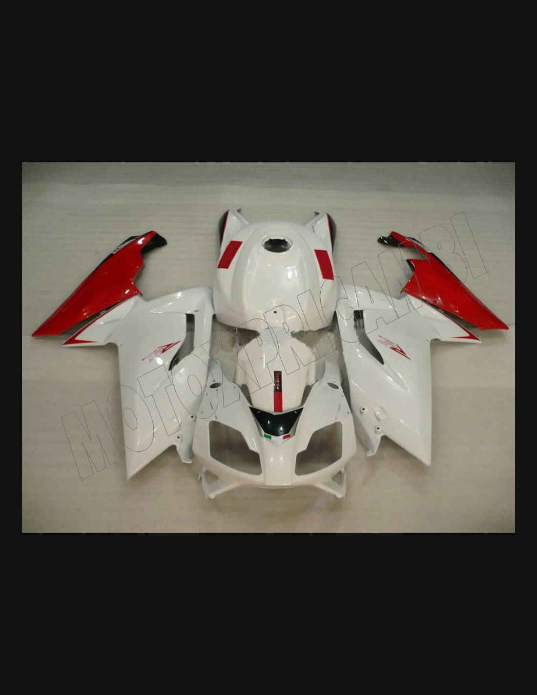 Les carénages sont fait en ABS (plastique) et sont compatible avec les carénages d’origine de la moto. Sont fournis déjà avec tous les trous et les supports internement, pour garantir un montage facile et sans modification, sur la moto de client. Aussi les carénages sont compatible avec les vis et tous les autre accessoires d’origine de la moto. Dans le prix est inclus aussi la protection chaleur pour le bas de carénage.