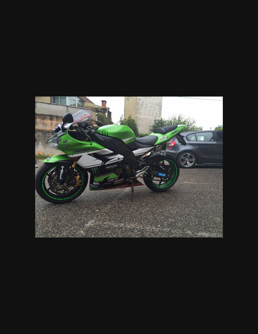 élite : nous utilisons les couleurs originales de la moto (Vert Kawasaki) ; les adhésifs viennent imprimé avec les nuances différentes grâce à notre ploter de coupe et de presse aux 8 couleurs et aux encres ECO-SOL MAX2 avec une qualité et une résistance aux rayons solaires jusqu'à les 7 ans garantis par la maison APA Italie que nous fournit les matériels de presse et de coupe. Ces matériels sont mis sous 3 couches de transparent de manière telle qu’ils restent luisants pour bien 7 ans. En outre, le carénage entier est peint à l'intérieur.