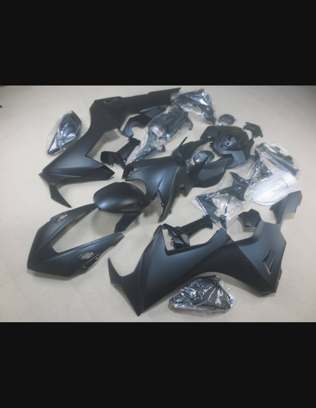 Le kit carénage comprend: tête de fourche, flanc gauche et droit, bas de carénage gauche et droit, coque arrière, garde boue avant et tous les parties noir pour compléter les carénages.
