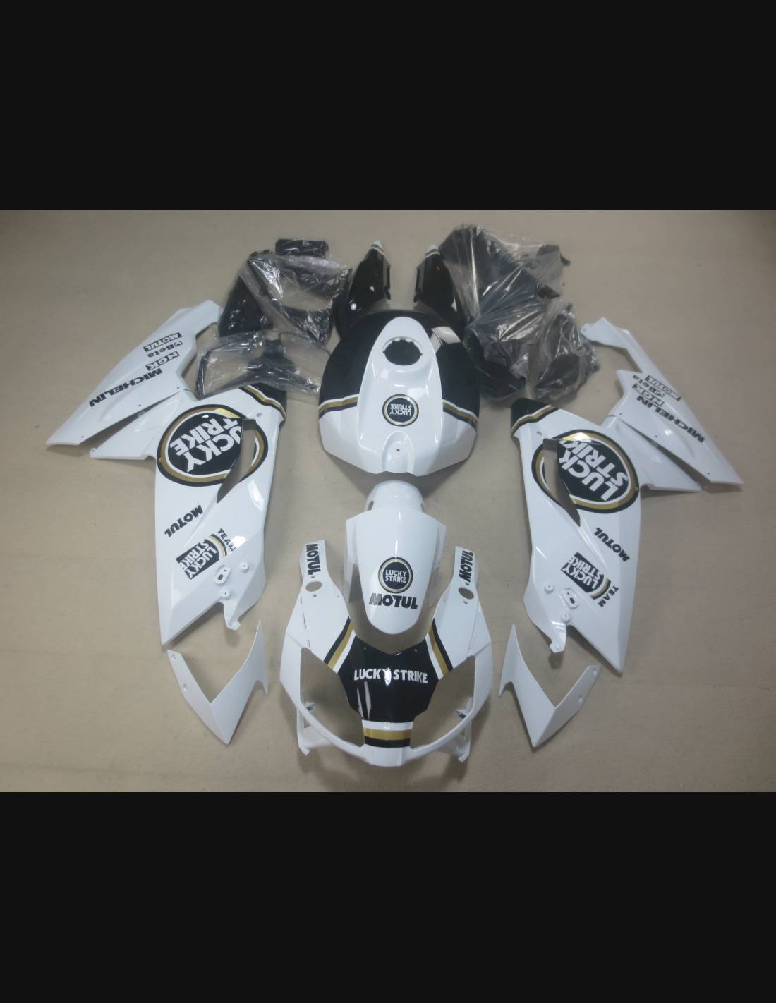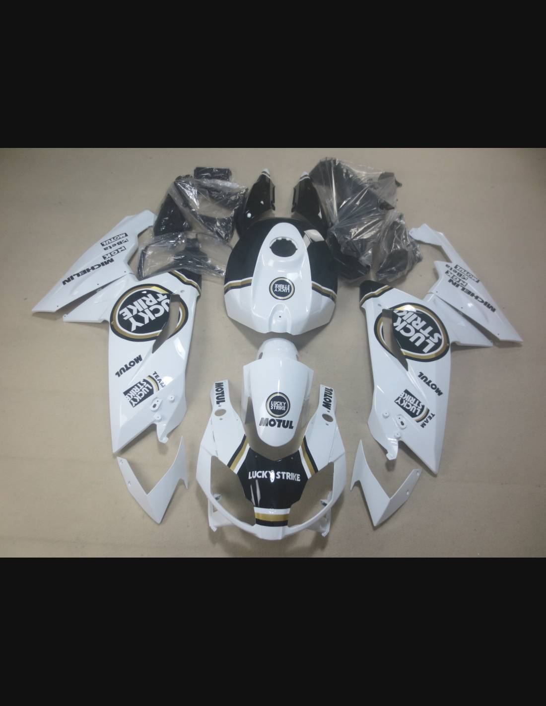 Les carénages sont fait en ABS (plastique) et sont compatible avec les carénages d’origine de la moto. Sont fournis déjà avec tous les trous et les supports internement, pour garantir un montage facile et sans modification, sur la moto de client. Aussi les carénages sont compatible avec les vis et tous les autre accessoires d’origine de la moto. Dans le prix est inclus aussi la protection chaleur pour le bas de carénage.