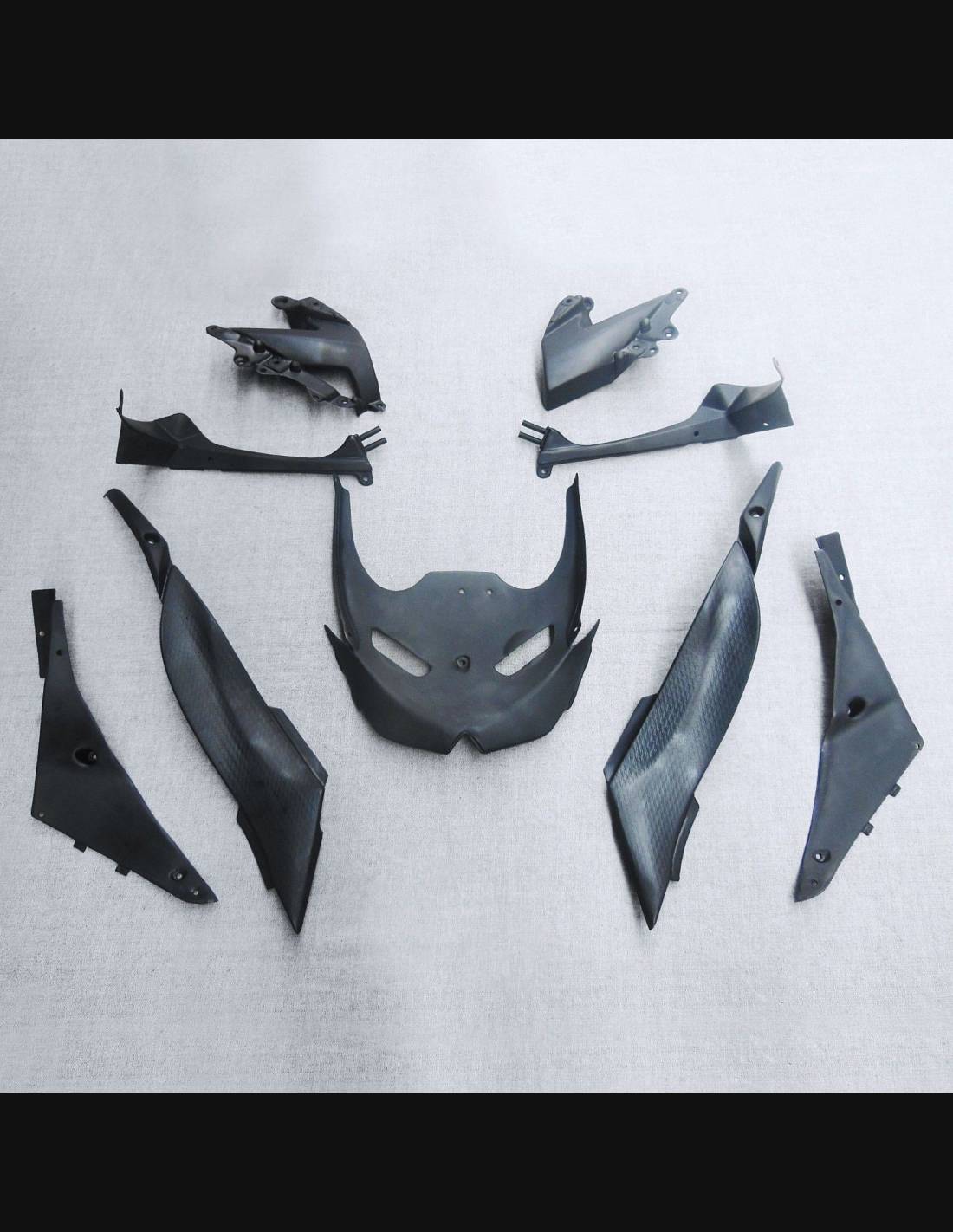 Les carénages sont fait en ABS (plastique) et sont compatible avec les carénages d’origine de la moto. Sont fournis déjà avec tous les trous et les supports internement, pour garantir un montage facile et sans modification, sur la moto de client. Aussi les carénages sont compatible avec les vis et tous les autre accessoires d’origine de la moto. Dans le prix est inclus aussi la protection chaleur pour le bas de carénage.