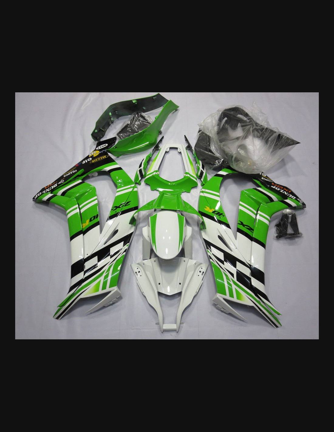 Les carénages sont fait en ABS (plastique) et sont compatible avec les carénages d’origine de la moto. Sont fournis déjà avec tous les trous et les supports internement, pour garantir un montage facile et sans modification, sur la moto de client. Aussi les carénages sont compatible avec les vis et tous les autre accessoires d’origine de la moto. Dans le prix est inclus aussi la protection chaleur pour le bas de carénage.