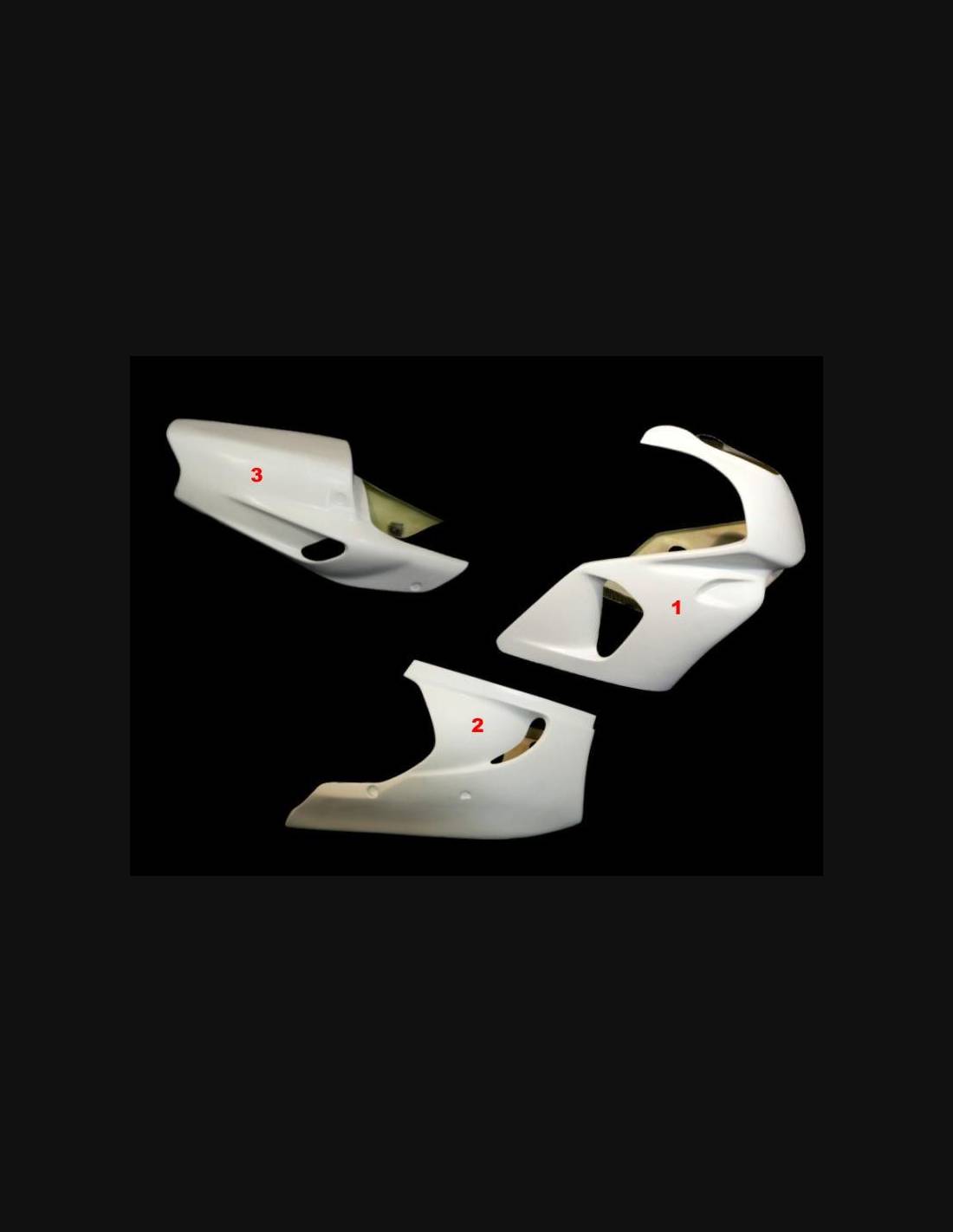Le kit carénages comprend: tête de fourche, flanc gauche et droit, bas de carénage, coque arrière complet (le cache réservoir n’est pas inclus).