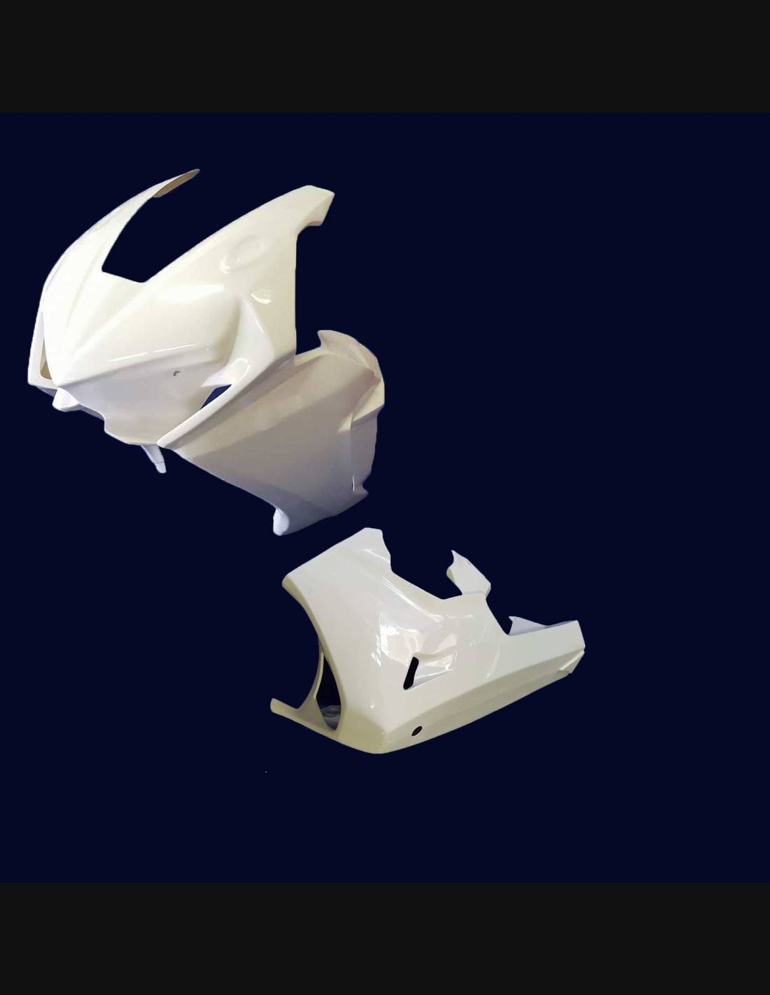 Les carénages poly racing sont fait en fibre de verre, avec les renforce aux points de plus grands efforts. Ils sont homologués pour les différents championnats et pour une utilisation amateur sur piste, grâce au bas de carénage fermé pour recueillir le liquide. Nous marquons où ils doivent être percés, afin de permettre au client final de faire le trou en fonction de la taille des vis qu'il utilisera.