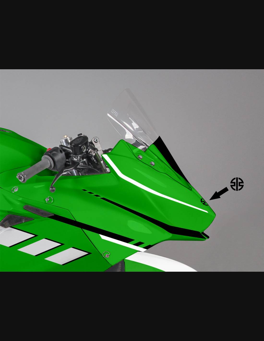 Elite: nous utilisons des couleurs compatibles avec le réservoir d'origine de la moto (par exemple le vert Kawasaki). Les stickers sont imprimés à l'aide d'imprimantes 8 couleurs qui leur confèrent une brillance et des nuances impeccables. L’ensemble du graphisme est recouvert de trois couches de transparent pour conserver les couleurs de le carénage vives au fil du temps. Nous peignons également tout le kit de carénage à l'intérieur.