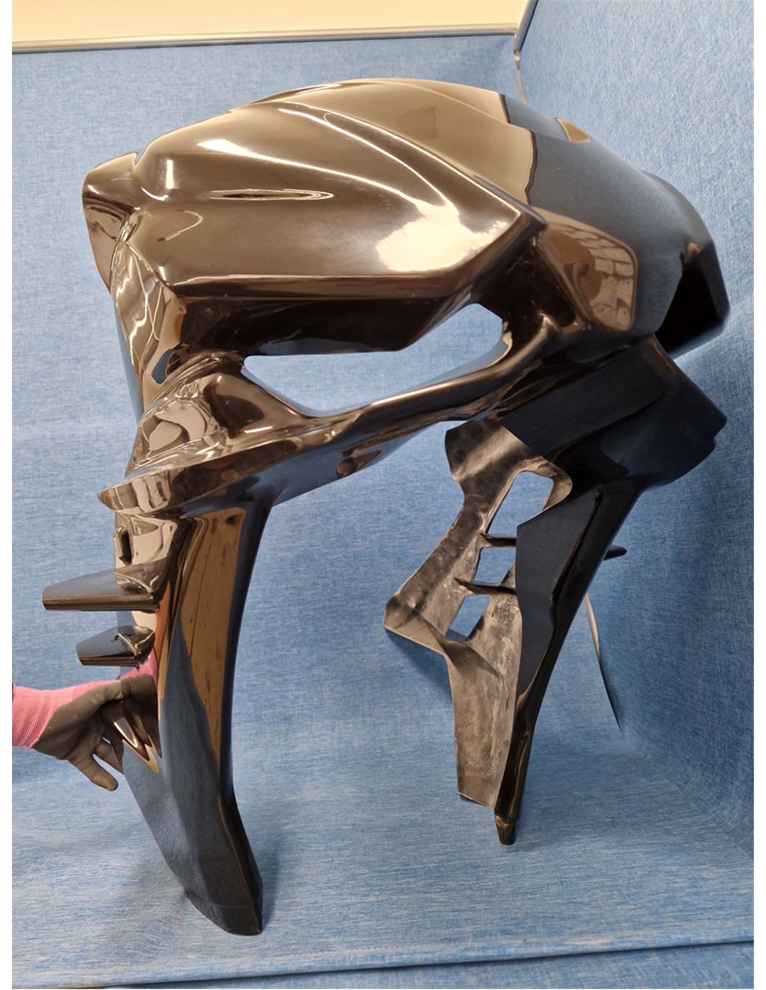 Les carénages poly racing sont fait en fibre de verre, avec les renforce aux points de plus grands efforts. Ils sont homologués pour les différents championnats et pour une utilisation amateur sur piste, grâce au bas de carénage fermé pour recueillir le liquide. Nous marquons où ils doivent être percés, afin de permettre au client final de faire le trou en fonction de la taille des vis qu'il utilisera.