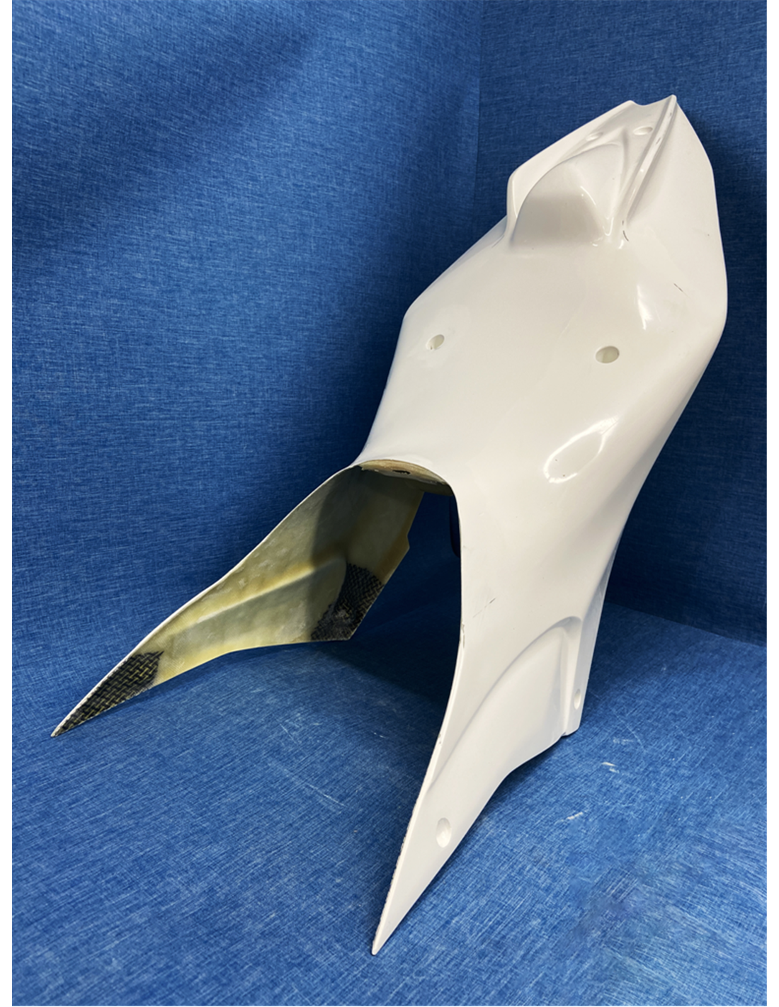 Les carénages poly racing sont fait en fibre de verre, avec les renforce aux points de plus grands efforts. Ils sont homologués pour les différents championnats et pour une utilisation amateur sur piste, grâce au bas de carénage fermé pour recueillir le liquide. Nous marquons où ils doivent être percés, afin de permettre au client final de faire le trou en fonction de la taille des vis qu'il utilisera.