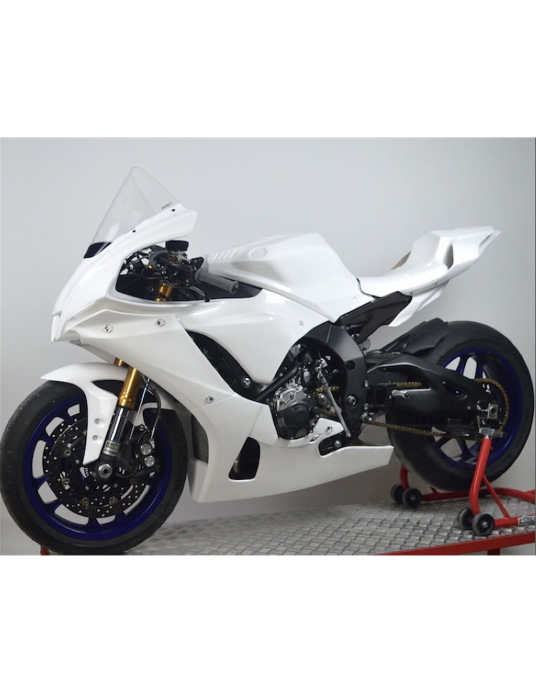 Le kit carénages comprend: tête de fourche, flanc gauche et droit, bas de carénage fermé et homologué pour la piste, coque arrière complet (le cache réservoir n’est pas inclus).