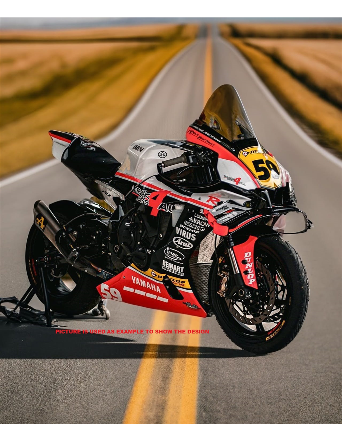 Le kit carénages comprend: tête de fourche, flanc gauche et droit, bas de carénage fermé et homologué pour la piste, coque arrière complet et garde boue avant (le cache réservoir n’est pas inclus).