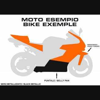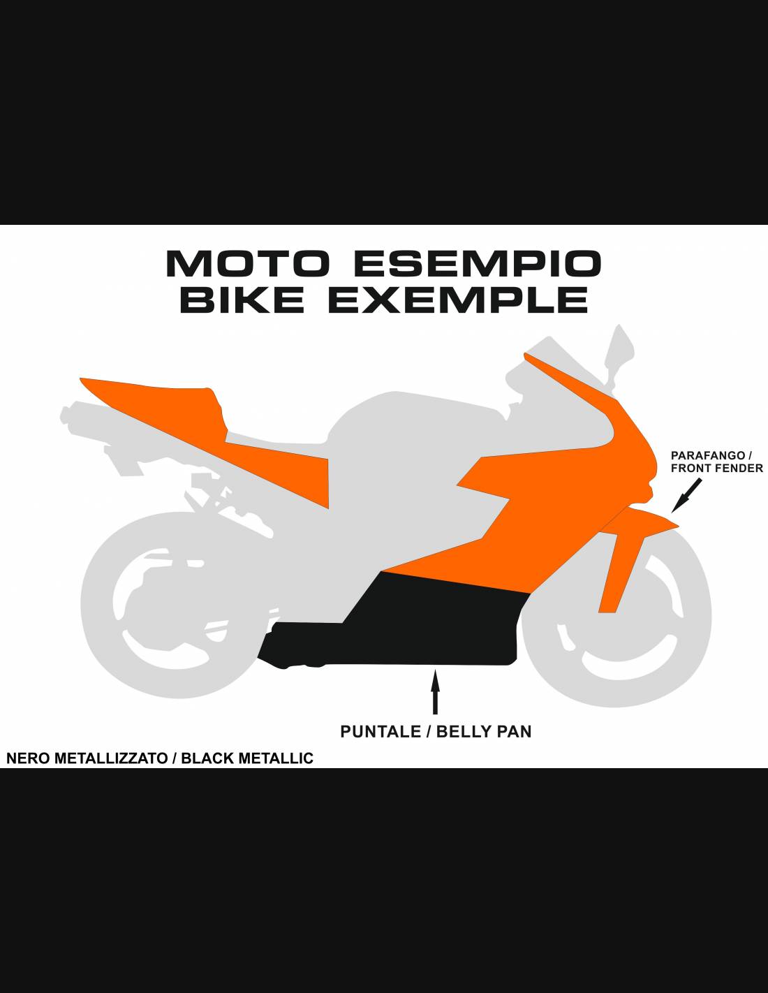 Le kit carénages comprend: tête de fourche, flanc gauche et droit, bas de carénage fermé et homologué pour la piste, coque arrière complet (le cache réservoir n’est pas inclus).