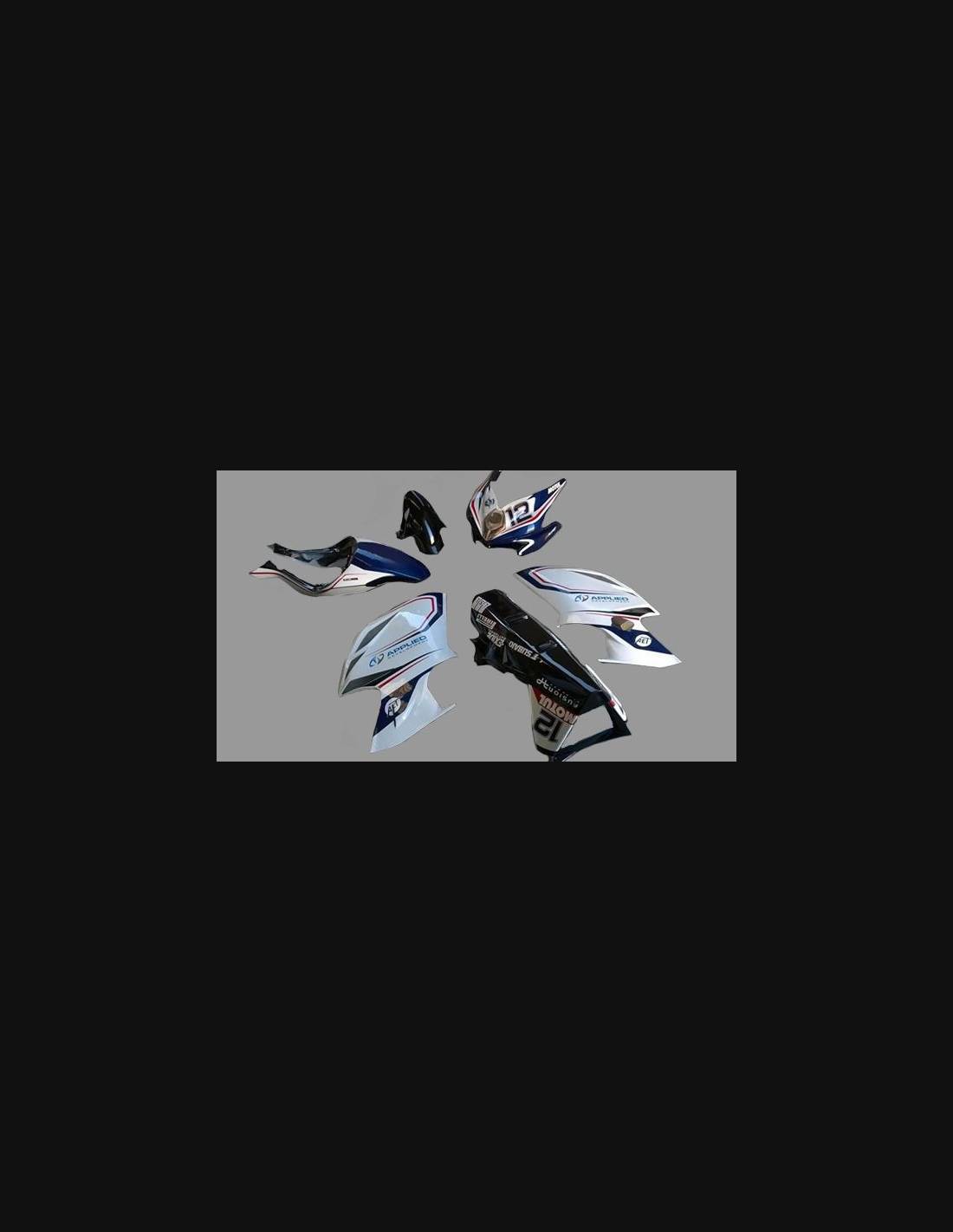 Elite : nous utilisons des peintures de haute qualité avec des nuances similaires à l'original. Les stickers sont imprimés à l'aide d'imprimantes 8 couleurs qui leur confèrent une brillance et des nuances impeccables. L’ensemble du graphisme est recouvert de trois couches de transparent pour conserver les couleurs de le carénage vives au fil du temps. Nous peignons également tout le kit de carénage à l'intérieur.