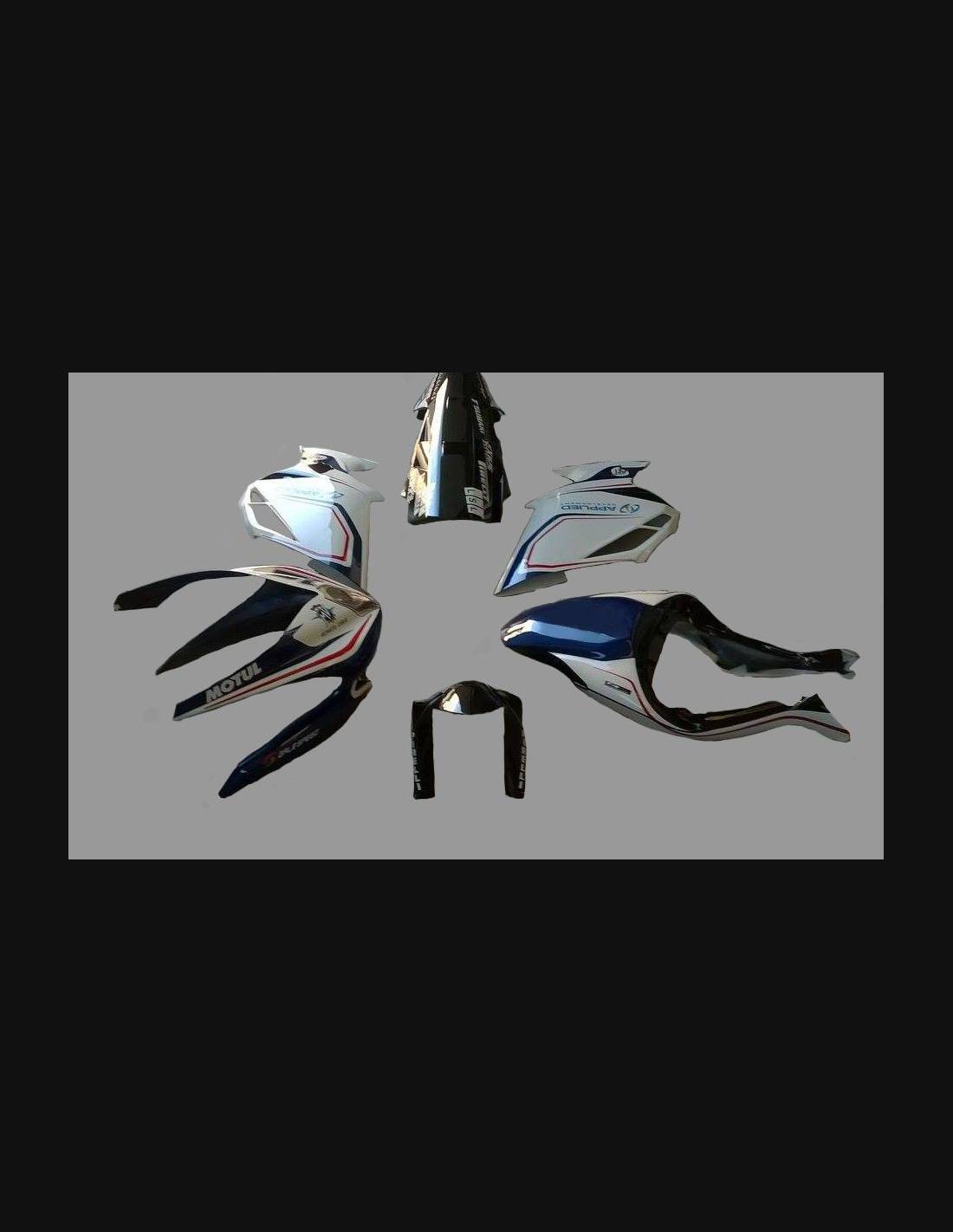 Le kit carénages comprend: tête de fourche, flanc gauche et droit, bas de carénage fermé et homologué pour la piste, coque arrière complet et garde boue avant (le cache réservoir n’est pas inclus).