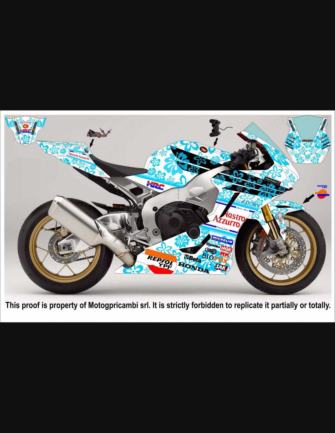 Elite : nous utilisons des peintures de haute qualité avec des nuances similaires à l'original. Les stickers sont imprimés à l'aide d'imprimantes 8 couleurs qui leur confèrent une brillance et des nuances impeccables. L’ensemble du graphisme est recouvert de trois couches de transparent pour conserver les couleurs de le carénage vives au fil du temps. Nous peignons également tout le kit de carénage à l'intérieur.