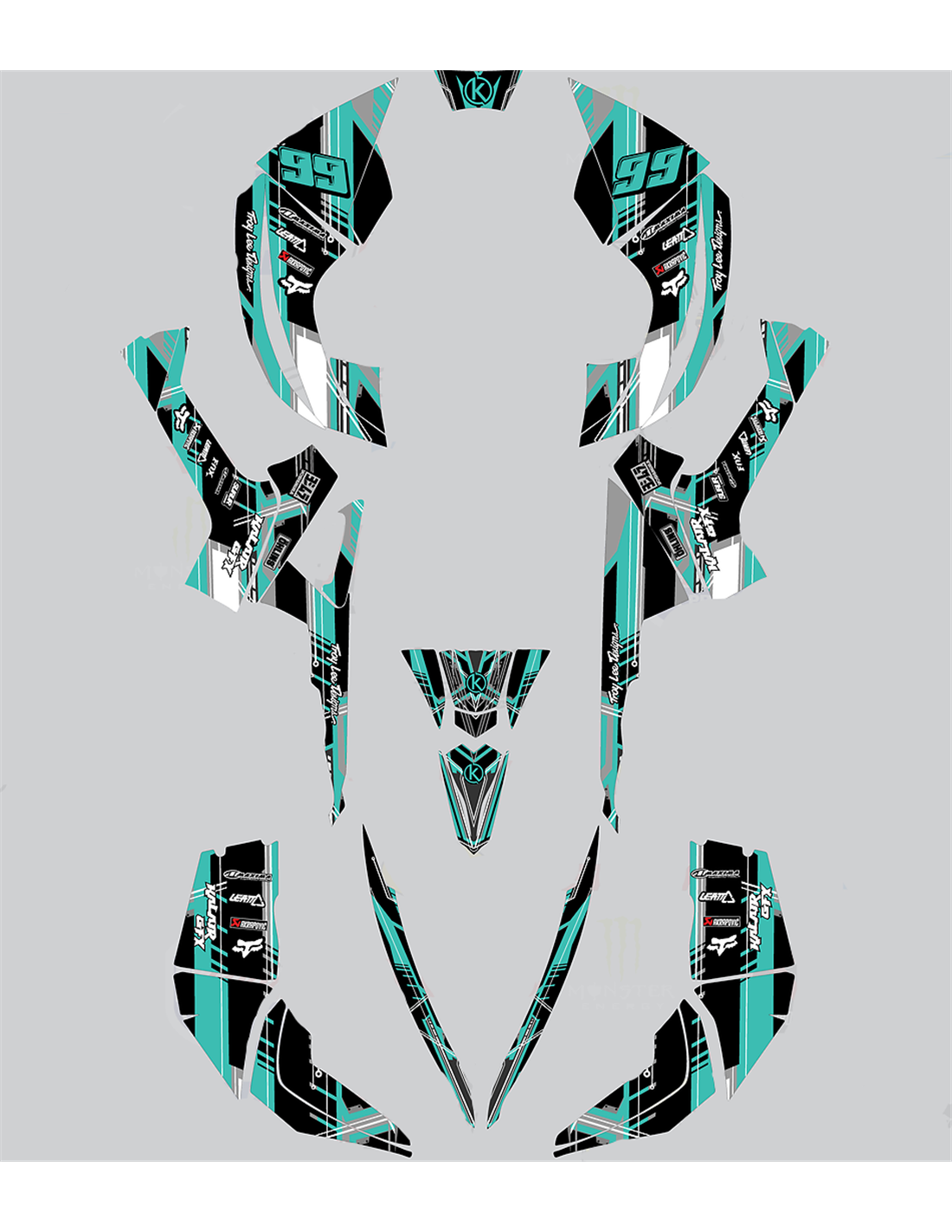 Les autocollants que nous produisons sont fabriqués à partir de matériaux crystal de première qualité qui s'adapteront facilement et parfaitement sur les plastiques de la moto du client. La résistance du matériau permet à notre graphisme de rester parfaitement collé même dans les conditions d'utilisation les plus difficiles de la moto. L'installation, grâce aux canaux d'évacuation d'air, vous permet d'installer les autocollants en douceur et sans bulles. Nous utilisons des machines de dernière génération pour l'impression, nous pouvons donc imprimer des couleurs vives et des nuances de haute qualité. Nous incluons une couche protectrice sur les autocollants, afin qu'ils soient toujours brillants au fil des ans et soient protégés contre l'eau et la saleté. Il est possible de personnaliser les autocollants selon vos préférences. Vous pouvez ajouter, supprimer ou modifier des sponsors techniciens, ajouter un numéro de course personnalisé ou votre propre nom. Vous pouvez indiquer toutes les modifications dans le champ «Personnalisation» sur le site Web lors de l'achat. Nous ne nous limitons pas seulement aux graphiques sur notre site Web, vous pouvez nous envoyer par e-mail ou WhatsApp une photo d'un design que nous n'avons pas, afin que nous puissions vous faire un devis et ensuite le faire. Par l'achat, vous acceptez les conditions de vente.