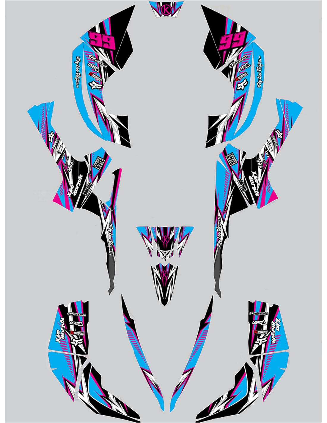 Les autocollants que nous produisons sont fabriqués à partir de matériaux crystal de première qualité qui s'adapteront facilement et parfaitement sur les plastiques de la moto du client. La résistance du matériau permet à notre graphisme de rester parfaitement collé même dans les conditions d'utilisation les plus difficiles de la moto. L'installation, grâce aux canaux d'évacuation d'air, vous permet d'installer les autocollants en douceur et sans bulles. Nous utilisons des machines de dernière génération pour l'impression, nous pouvons donc imprimer des couleurs vives et des nuances de haute qualité. Nous incluons une couche protectrice sur les autocollants, afin qu'ils soient toujours brillants au fil des ans et soient protégés contre l'eau et la saleté. Il est possible de personnaliser les autocollants selon vos préférences. Vous pouvez ajouter, supprimer ou modifier des sponsors techniciens, ajouter un numéro de course personnalisé ou votre propre nom. Vous pouvez indiquer toutes les modifications dans le champ «Personnalisation» sur le site Web lors de l'achat. Nous ne nous limitons pas seulement aux graphiques sur notre site Web, vous pouvez nous envoyer par e-mail ou WhatsApp une photo d'un design que nous n'avons pas, afin que nous puissions vous faire un devis et ensuite le faire. Par l'achat, vous acceptez les conditions de vente.