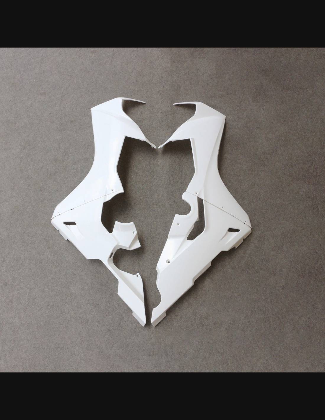 Our street fairings are made of ABS (plastic) and they are compatible with the stock fairings. We supply them already pre-drilled and there are all internal mounting points, so we can guarantee an easy installation and without modifications on the motorcycle of the customer. Also, they are compatible with the screws and other OEM accessories of the motorbike. Price includes the heat shield protection to stick on the lower fairings too.
