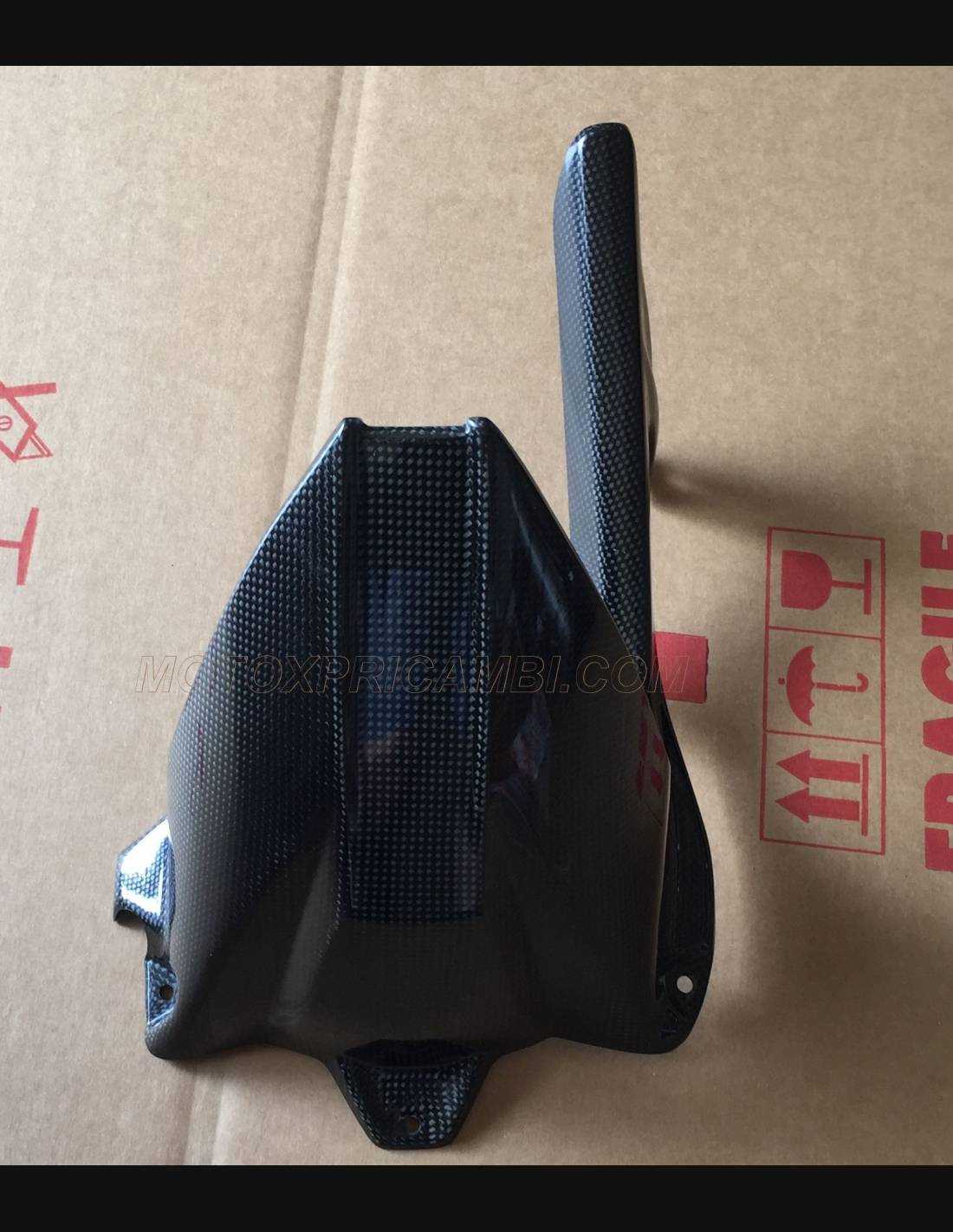 The fairings in quality carbon include the front upper part, the lateral fairings, the back seat, the belly pan and the front fender. The carbon is glossy as the picture. Delivery time: 15-20 days