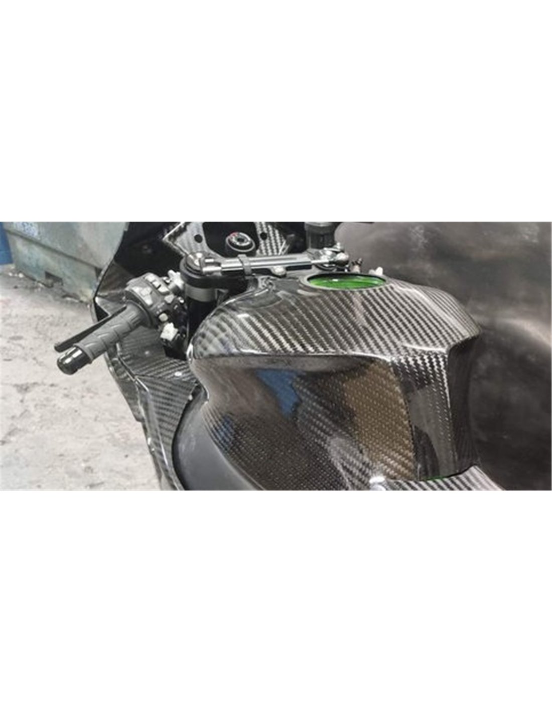 The fairings in quality carbon include the front upper part, the lateral fairings, the back seat, the belly pan and the front fender. The carbon is glossy as the picture. Delivery time: 15-20 days