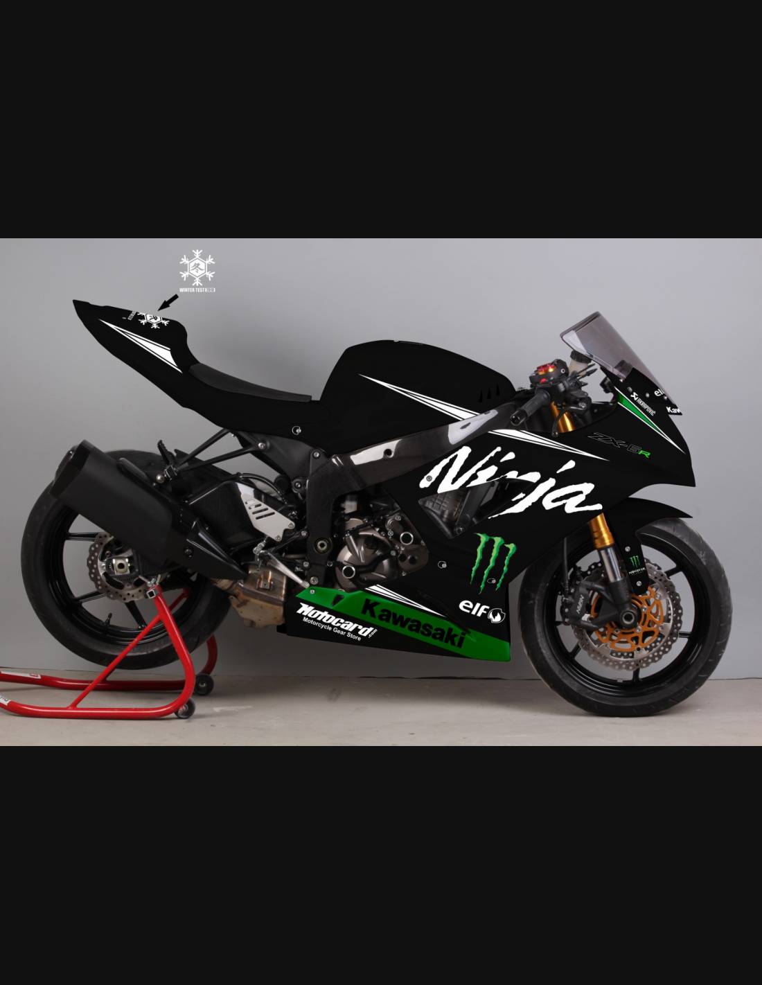 Elite: we use compatible colours with the stock tank of the motorcycle (e.g. Kawasaki’s green). The stickers are printed using 8-color printers which give them impeccable shine and shades. The whole graphic is under three layers of clear coat to keep the colors of the bodywork bright over time. We also paint the whole fairing kit inside.