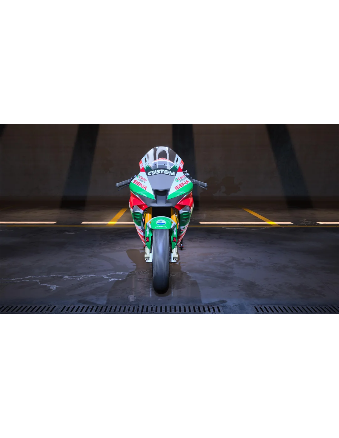 Elite: we use high quality paints with shades similar to the original. The stickers are printed using 8-color printers which give them impeccable shine and shades. The whole graphic is under three layers of clear coat to keep the colors of the bodywork bright over time. We also paint the whole fairing kit inside.