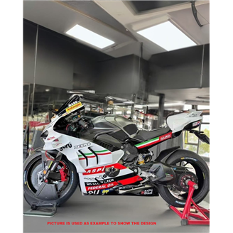Elite: we use compatible colours with the stock tank of the motorcycle (e.g. Ducati’s red). The stickers are printed using 8-color printers which give them impeccable shine and shades. The whole graphic is under three layers of clear coat to keep the colors of the bodywork bright over time. We also paint the whole fairing kit inside.