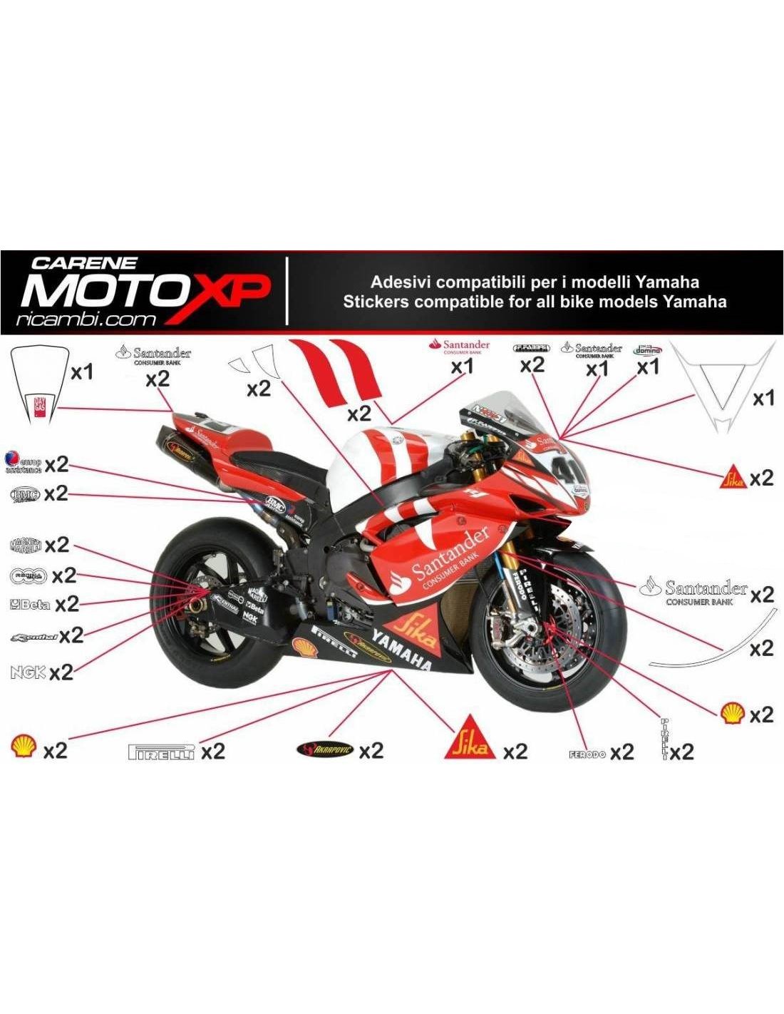 Stickers are produced with high quality materials and are adapted on the dimensions of the bike that the customer indicates during the purchase. The kit includes all non-original stickers, in order to complete the desired design: for front upper part, right and left side fairing, belly pan, back seat, swingarm and front fender. It’s possible to customize stickers too (colours, numbers, names, etc). It’s important to write changes in the field “more information”. The price of the sticker kit doesn’t change, unless substantial modifications (e.g. fluorescent colours). Through the purchase, you accept the sales conditions. You can stick them under the clear coat or after it. Unless a different request of the customer, we will supply the sticker kit with the protection.