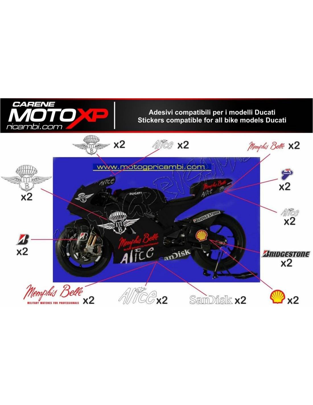 Stickers are produced with high quality materials and are adapted on the dimensions of the bike that the customer indicates during the purchase. The kit includes all non-original stickers, in order to complete the desired design: for front upper part, right and left side fairing, belly pan, back seat, swingarm and front fender. It’s possible to customize stickers too (colours, numbers, names, etc). It’s important to write changes in the field “more information”. The price of the sticker kit doesn’t change, unless substantial modifications (e.g. fluorescent colours). Through the purchase, you accept the sales conditions. You can stick them under the clear coat or after it. Unless a different request of the customer, we will supply the sticker kit with the protection.