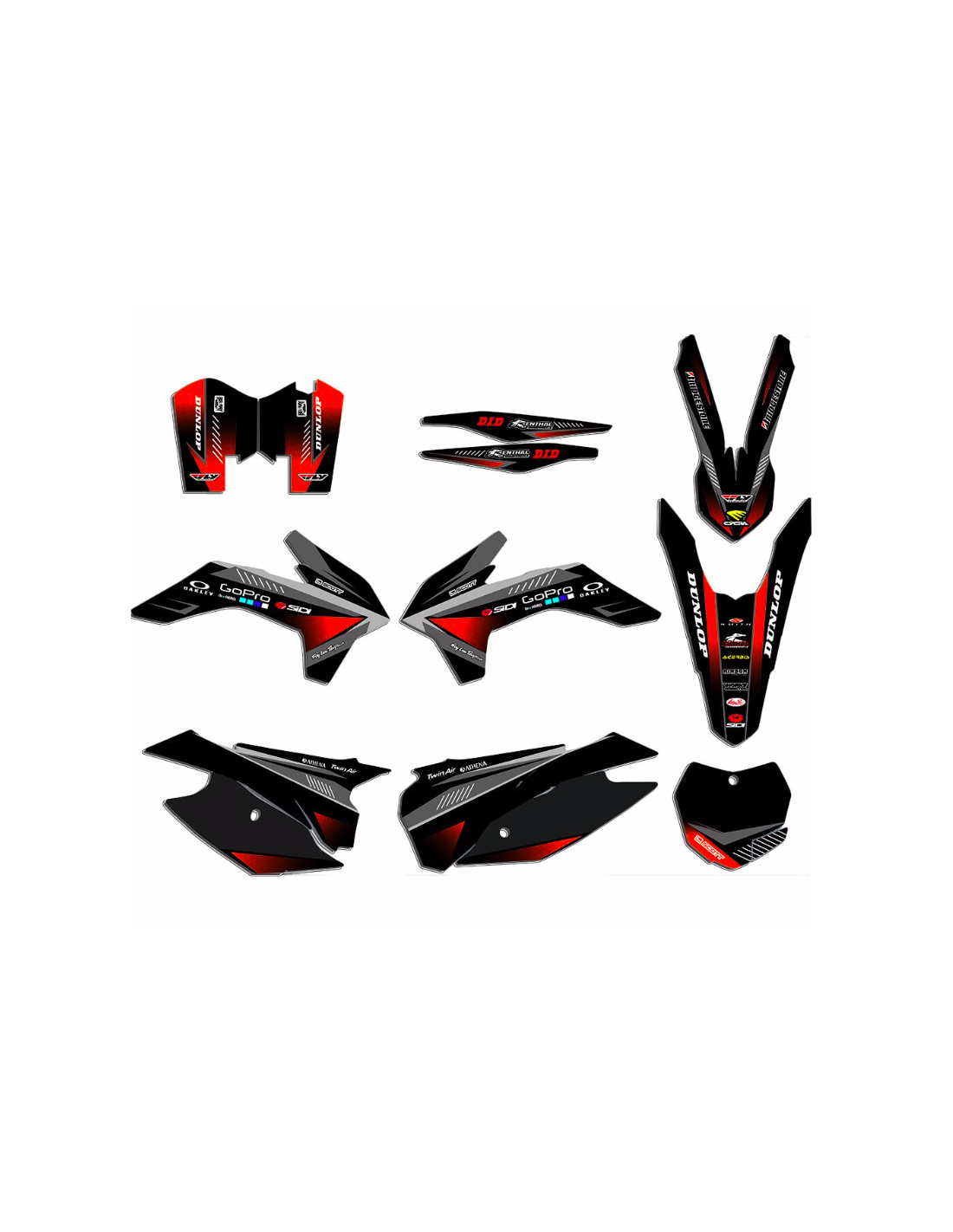 The stickers we produce are made of first quality crystal materials that will be adapted easily and perfectly on the plastics of the motorcycle of the customer. The resistance of the material allows our graphic to stay perfectly sticked also during the most difficult usage conditions of the motorcycle. The installation, thanks to the channels for air discharge lets you install the stickers smoothly and without bubbles. We use last generation machineries for the printing, so we can print bright colors and high qualities shades. We include a protective layer on the stickers, so they will be always bright during the years and are protected against water and dirt. It is possible to customize the stickers as you prefer. You can add, remove or change technician sponsors, add a custom race number or your own name. You can indicate all changes in the field “Product customization” on the website during the purchase. We are not limited only to the graphics on our website, you can send us by email or WhatsApp a picture of a design we don’t have, so we can make you a quotation and then make it. Through the purchase, you accept the sales conditions.