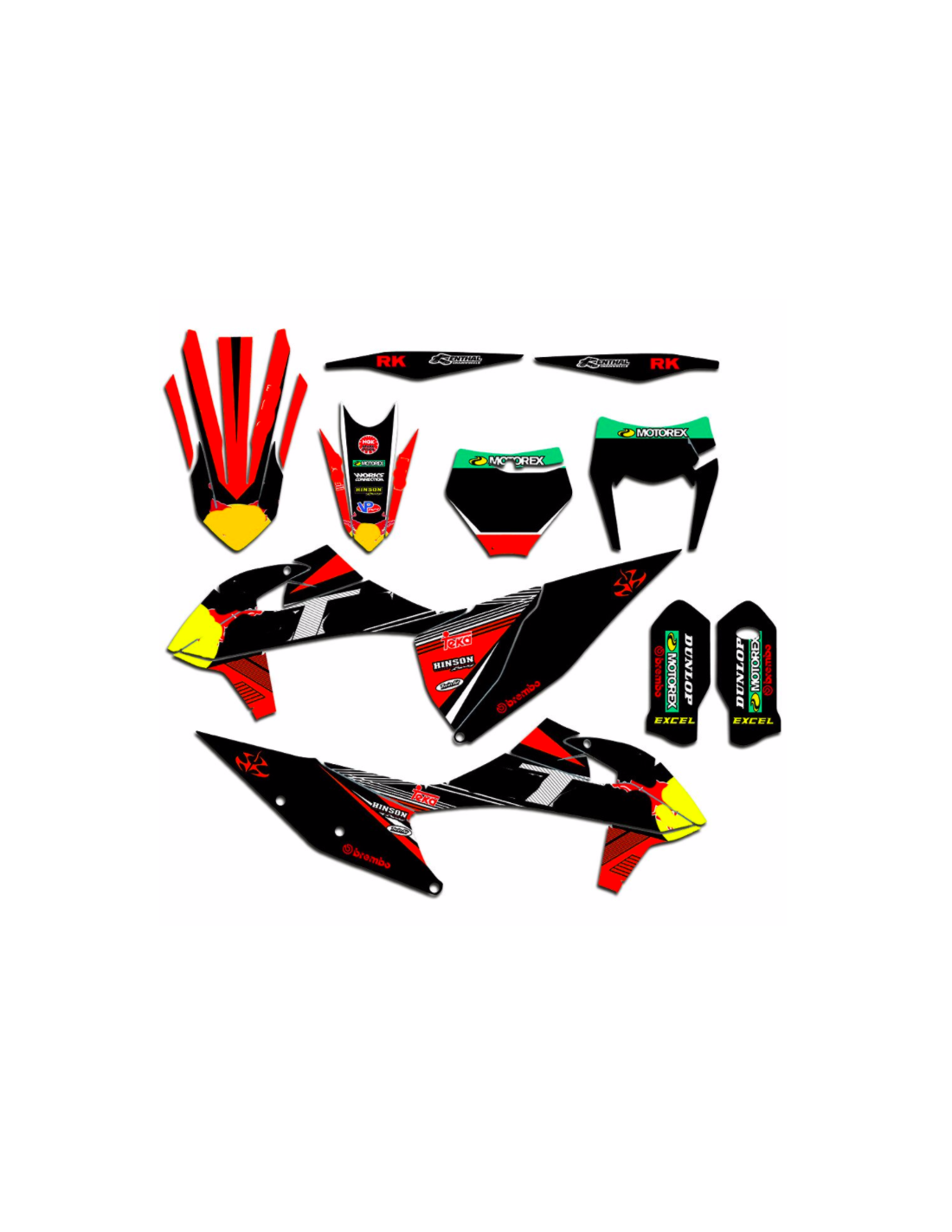 The stickers we produce are made of first quality crystal materials that will be adapted easily and perfectly on the plastics of the motorcycle of the customer. The resistance of the material allows our graphic to stay perfectly sticked also during the most difficult usage conditions of the motorcycle. The installation, thanks to the channels for air discharge lets you install the stickers smoothly and without bubbles. We use last generation machineries for the printing, so we can print bright colors and high qualities shades. We include a protective layer on the stickers, so they will be always bright during the years and are protected against water and dirt. It is possible to customize the stickers as you prefer. You can add, remove or change technician sponsors, add a custom race number or your own name. You can indicate all changes in the field “Product customization” on the website during the purchase. We are not limited only to the graphics on our website, you can send us by email or WhatsApp a picture of a design we don’t have, so we can make you a quotation and then make it. Through the purchase, you accept the sales conditions.