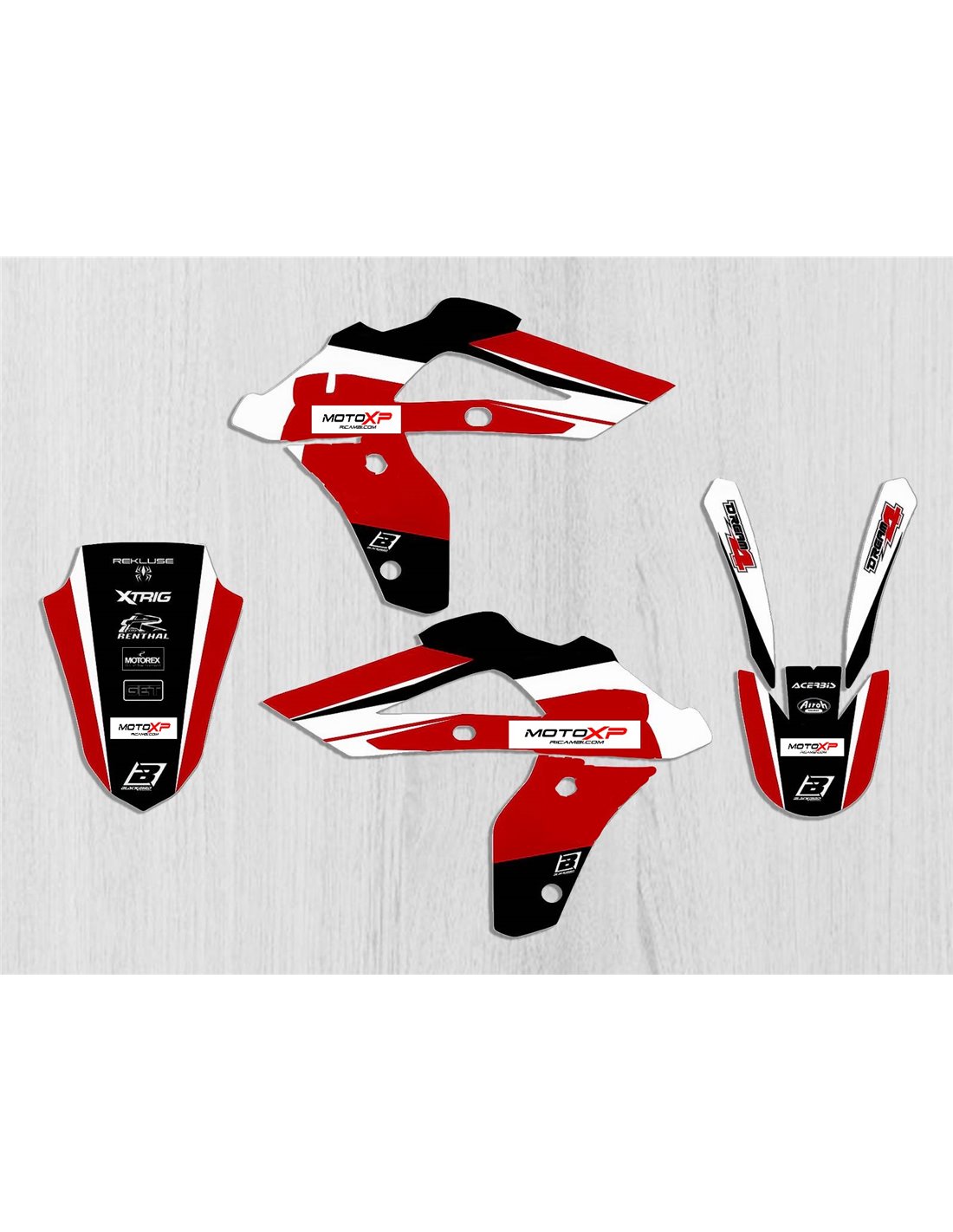 The stickers we produce are made of first quality crystal materials that will be adapted easily and perfectly on the plastics of the motorcycle of the customer. The resistance of the material allows our graphic to stay perfectly sticked also during the most difficult usage conditions of the motorcycle. The installation, thanks to the channels for air discharge lets you install the stickers smoothly and without bubbles. We use last generation machineries for the printing, so we can print bright colors and high qualities shades. We include a protective layer on the stickers, so they will be always bright during the years and are protected against water and dirt. It is possible to customize the stickers as you prefer. You can add, remove or change technician sponsors, add a custom race number or your own name. You can indicate all changes in the field “Product customization” on the website during the purchase. We are not limited only to the graphics on our website, you can send us by email or WhatsApp a picture of a design we don’t have, so we can make you a quotation and then make it. Through the purchase, you accept the sales conditions.