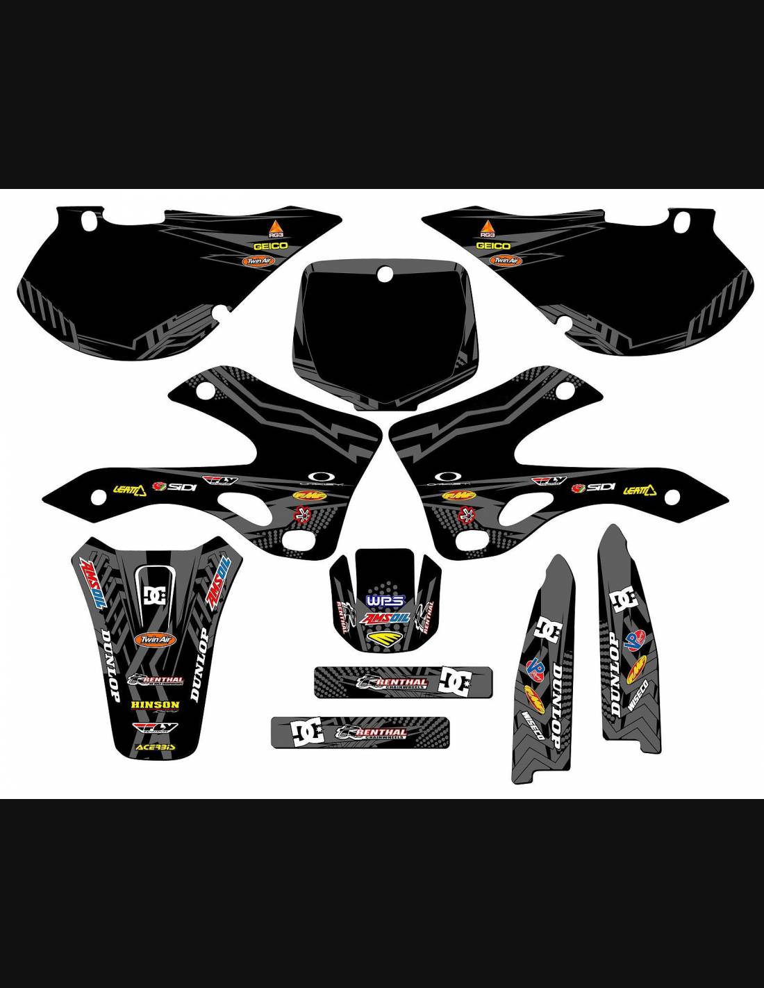 The stickers we produce are made of first quality crystal materials that will be adapted easily and perfectly on the plastics of the motorcycle of the customer. The resistance of the material allows our graphic to stay perfectly sticked also during the most difficult usage conditions of the motorcycle. The installation, thanks to the channels for air discharge lets you install the stickers smoothly and without bubbles. We use last generation machineries for the printing, so we can print bright colors and high qualities shades. We include a protective layer on the stickers, so they will be always bright during the years and are protected against water and dirt. It is possible to customize the stickers as you prefer. You can add, remove or change technician sponsors, add a custom race number or your own name. You can indicate all changes in the field “Product customization” on the website during the purchase. We are not limited only to the graphics on our website, you can send us by email or WhatsApp a picture of a design we don’t have, so we can make you a quotation and then make it. Through the purchase, you accept the sales conditions.